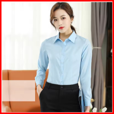 Kameja Putih Wanita Lengan Panjang Hitam Putih Atasan Kameja Kantor Polos Formal