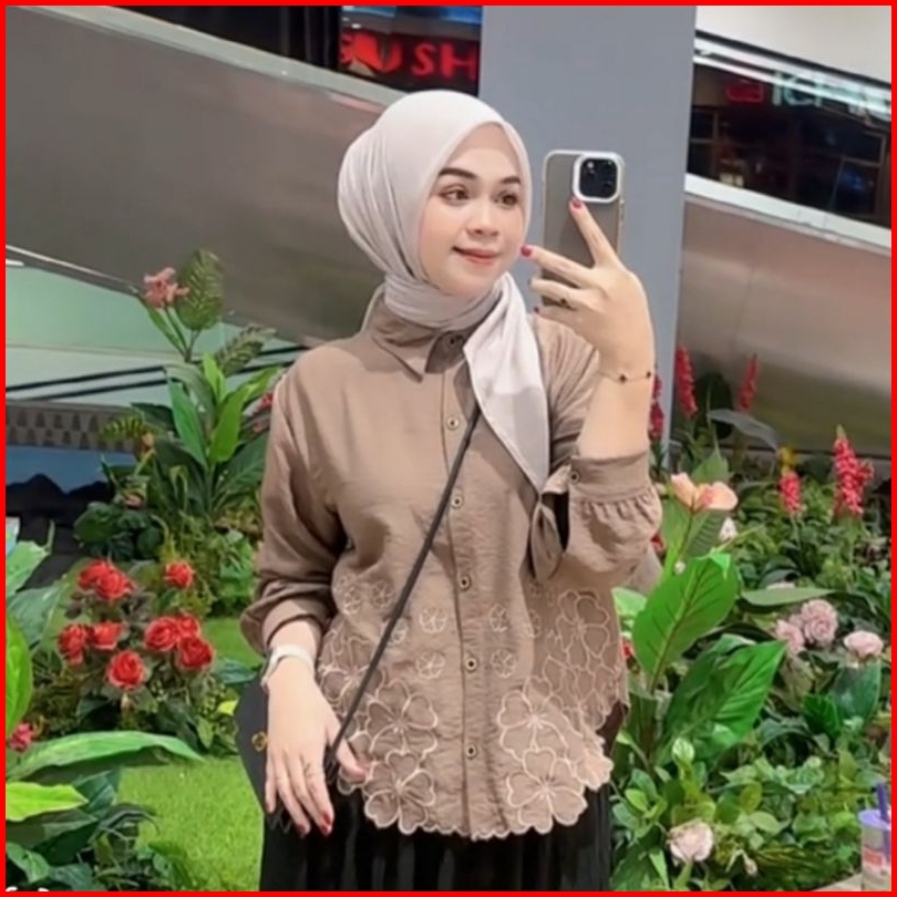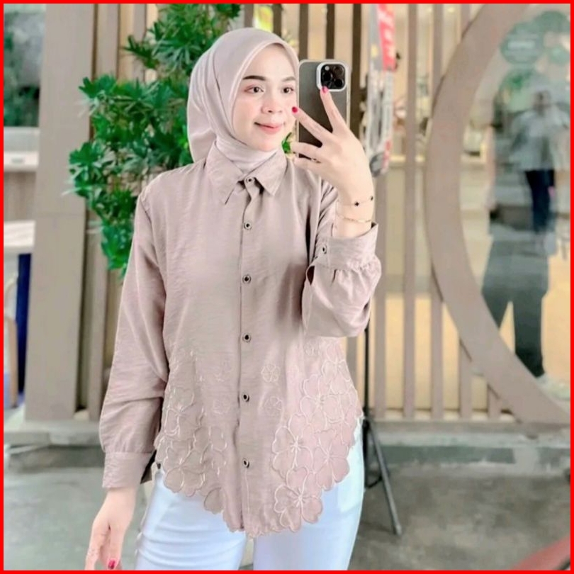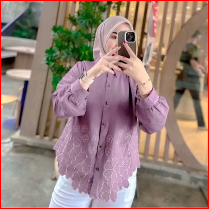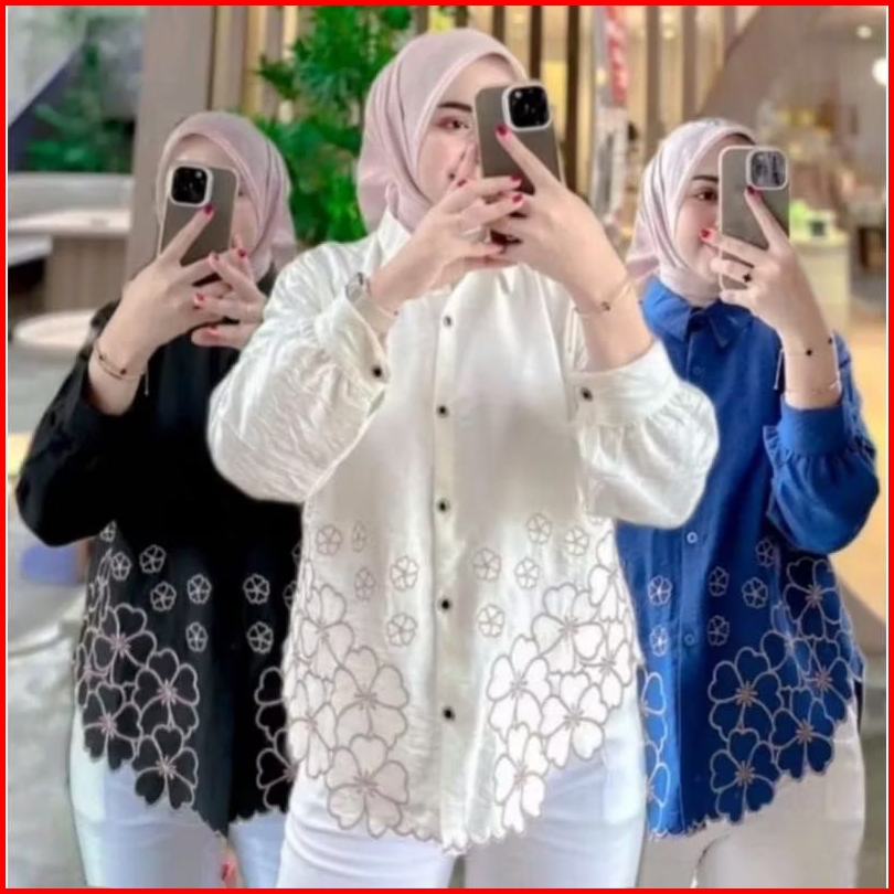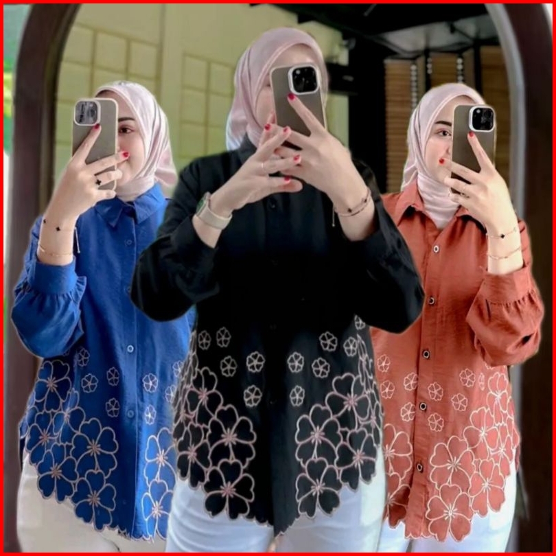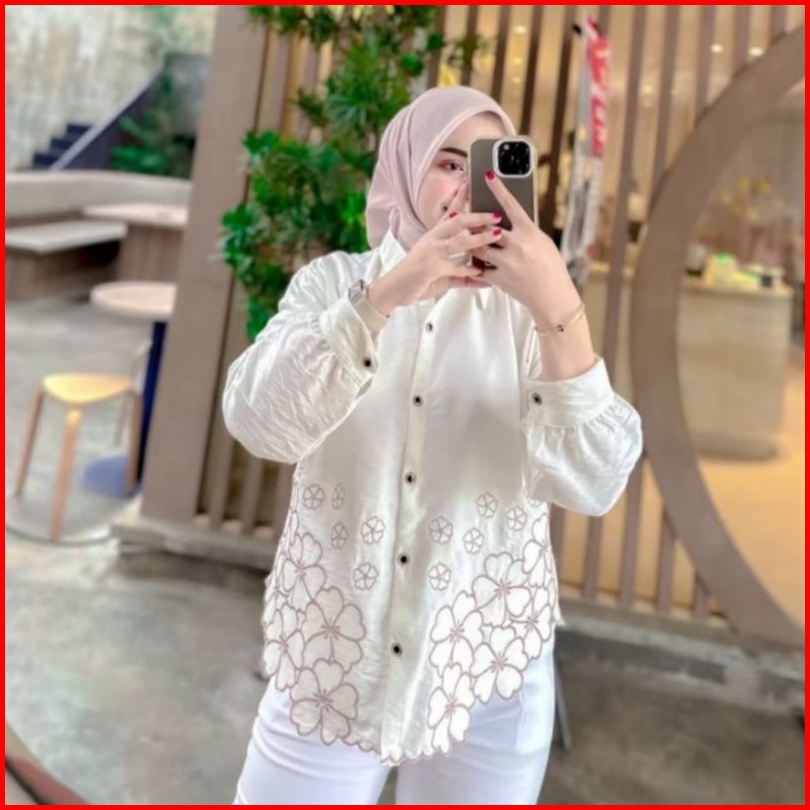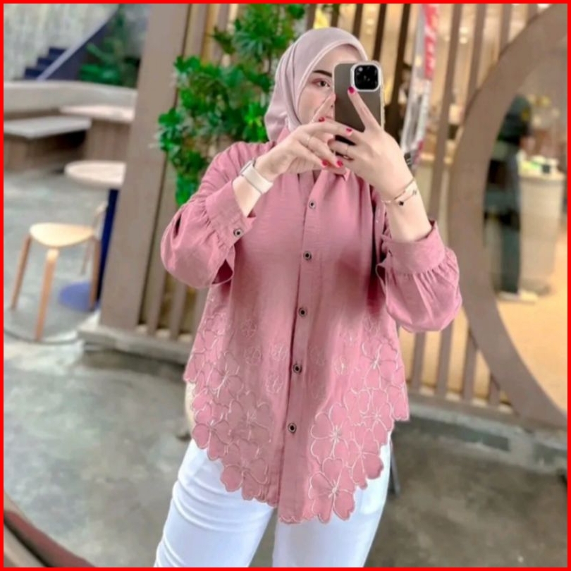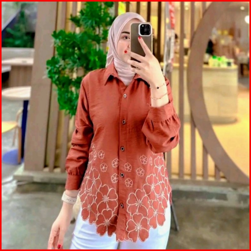 Kemeja Wanita Deanda Motif Bordir Kemeja Polo Linen Motif Bunga Bordir Kekinian Blouse Korean Style