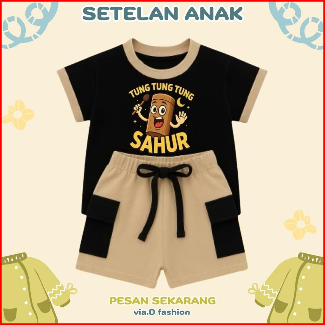Setelan Baju Anak Anomali Tung Tung Sahur Laki-laki Usia 3-8 Tahun