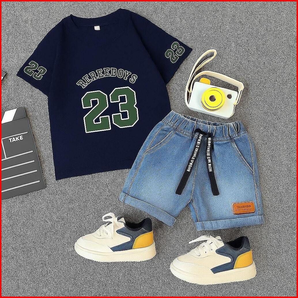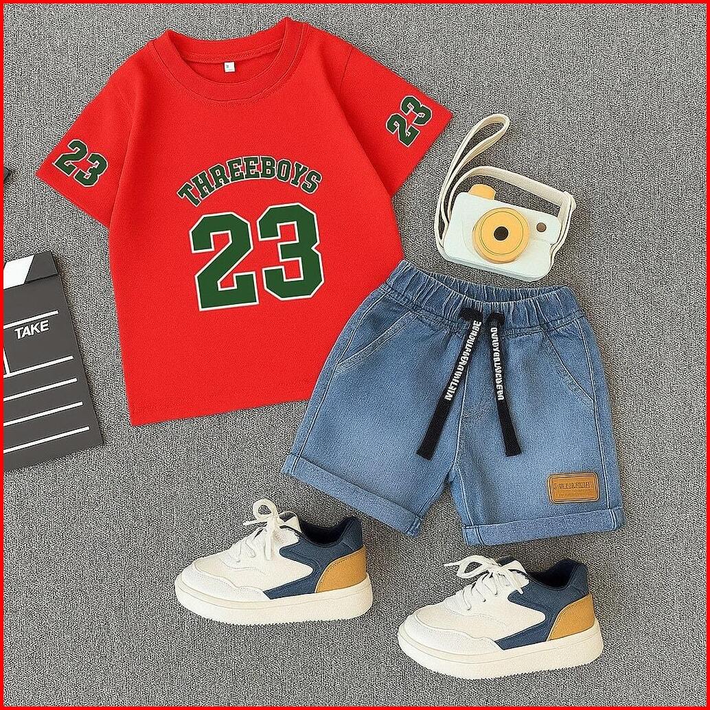Three Boys Setelan Kaos Celana Jeans Anak Motif Threeboys Cowok Cewek Usia 2-7 Tahun