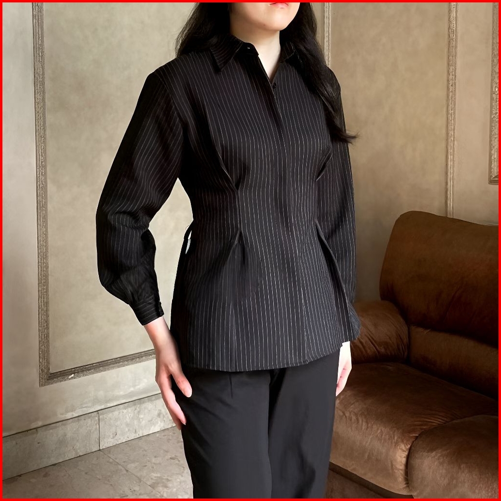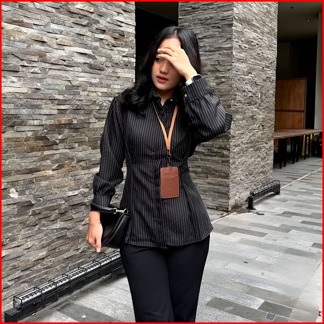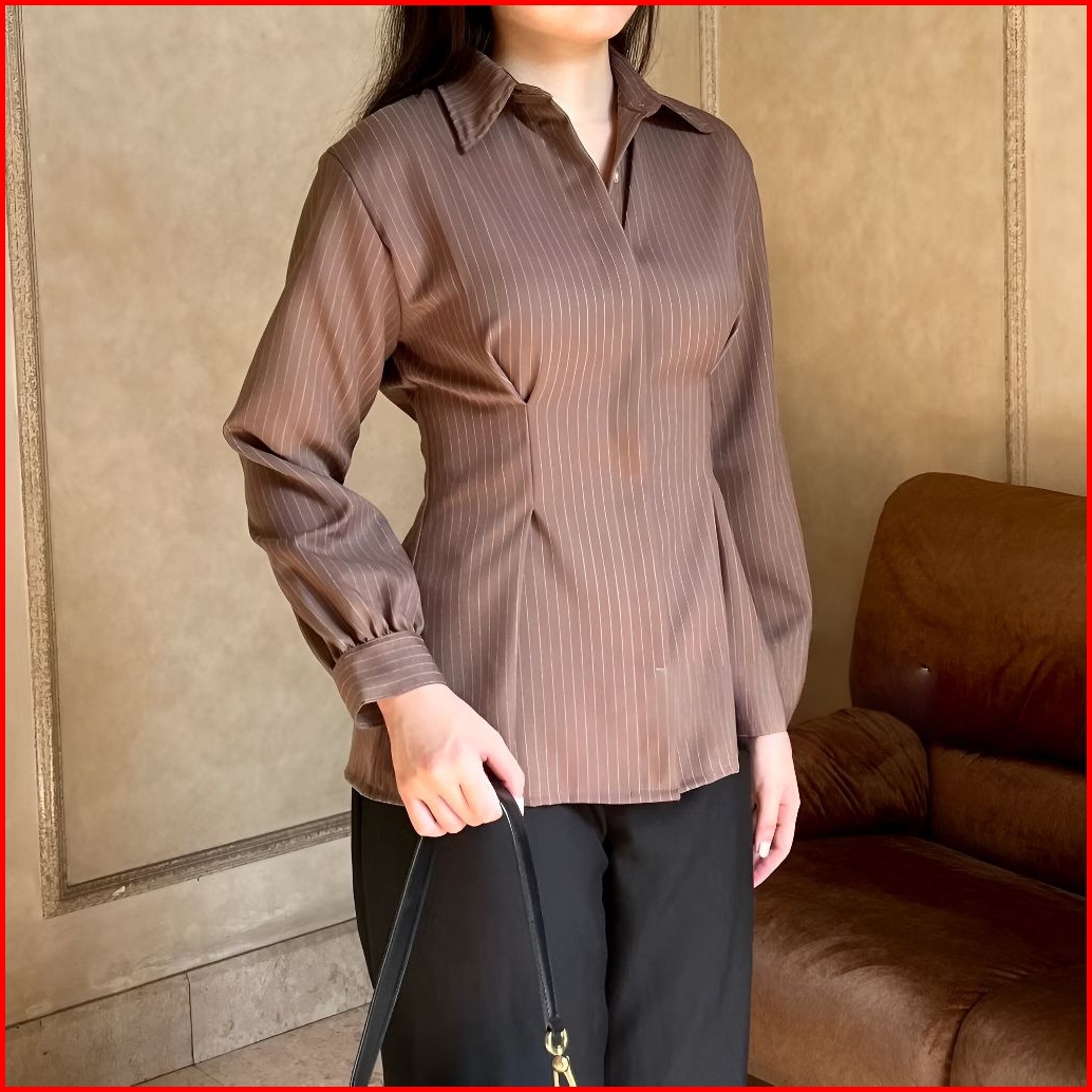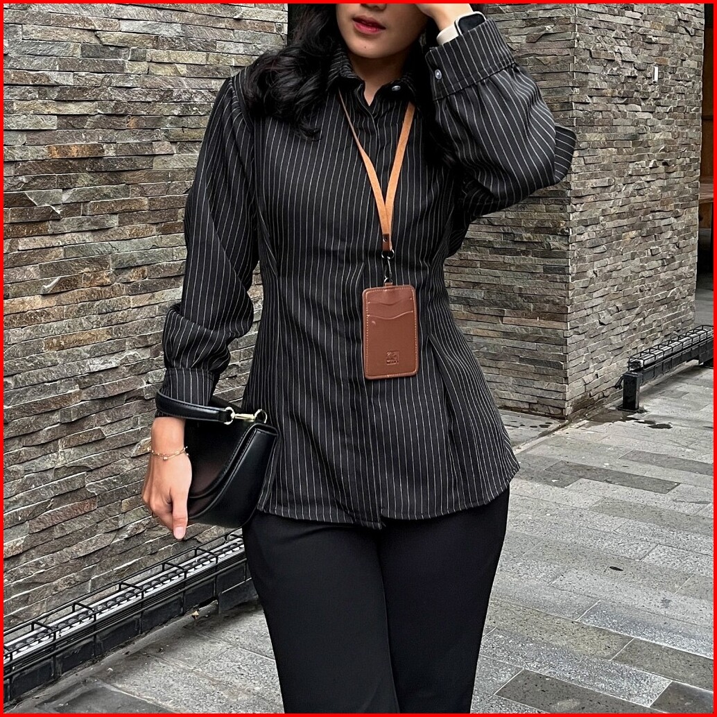 Nicetry-arba Top Kemeja Fitted Kemeja Kerja Wanita Blus Garis-garis Lengan Panjang