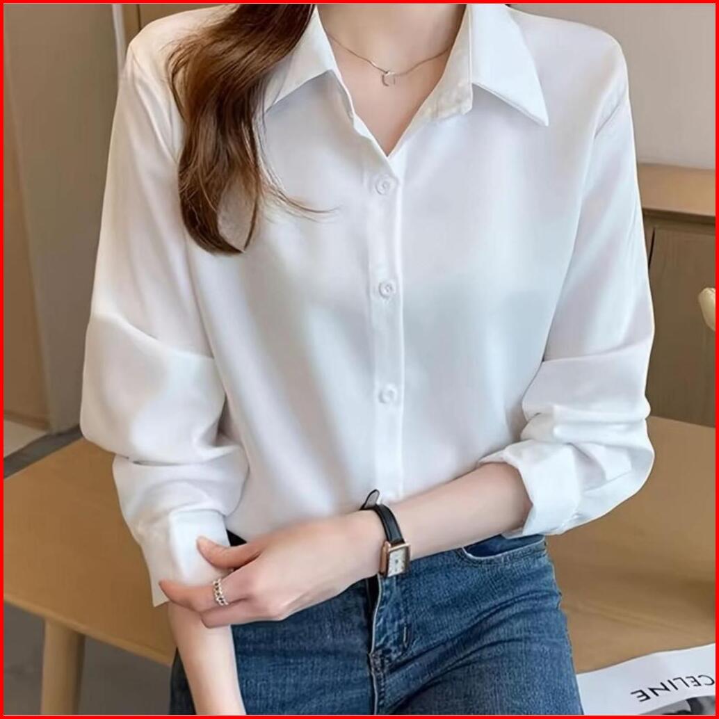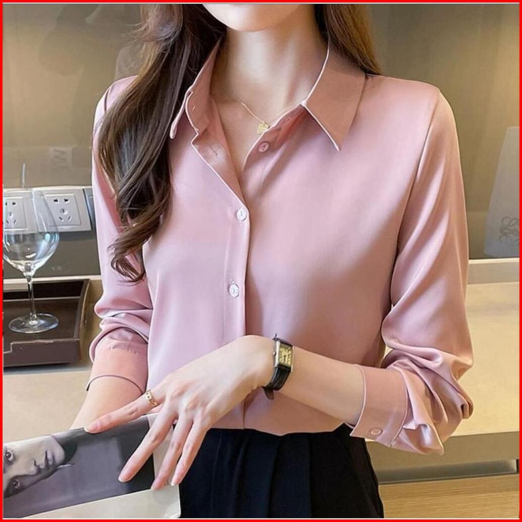 Kemeja Polos Wanita Bahan Katun Full Kancing Lengan Panjang By Mg Fashion