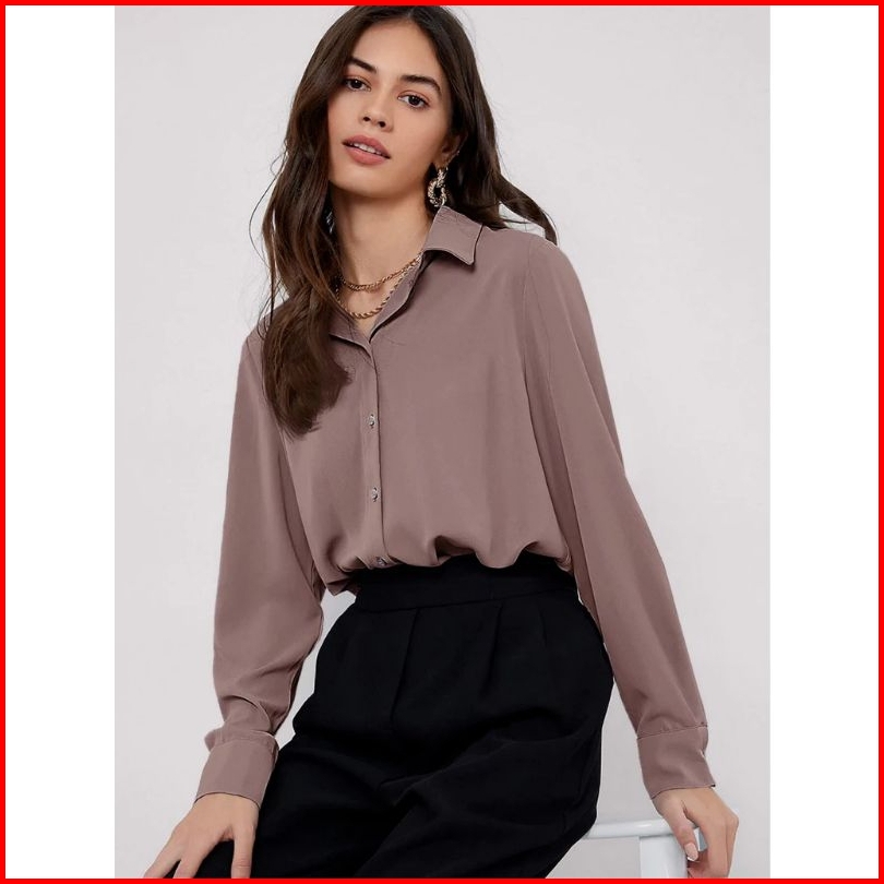 Termurah Kemeja Polos Basic Wanita Kemeja Kuliah Wanita Kemeja Kasual Wanita Kemeja Polos Lengan Panjang Shakila Kemeja
