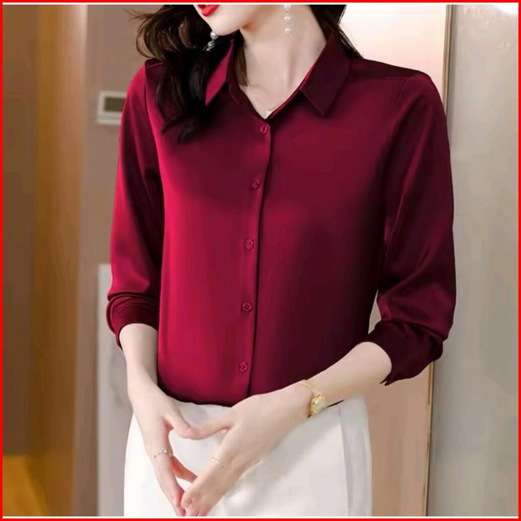 Kemeja Basic Wanita Terbaru By Veronica Atasan Polos Wanita Premium Kasual Formal Putih Hitam Navy Maron
