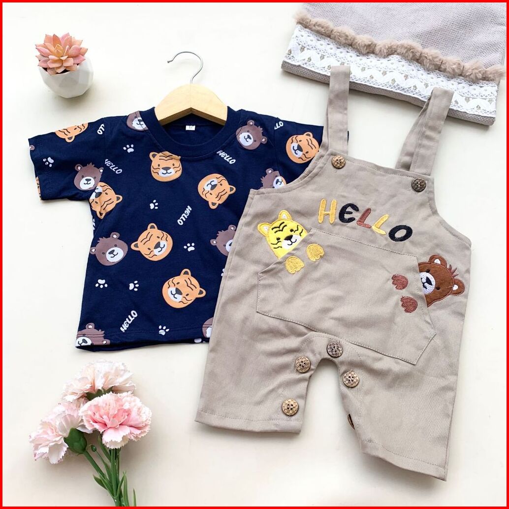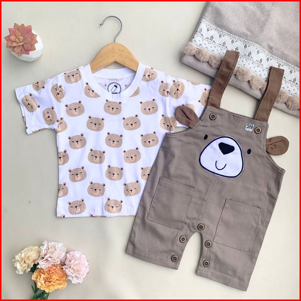 Tarobabyshop- Baju Setelan Overal Chinos Motif Lucu Chi