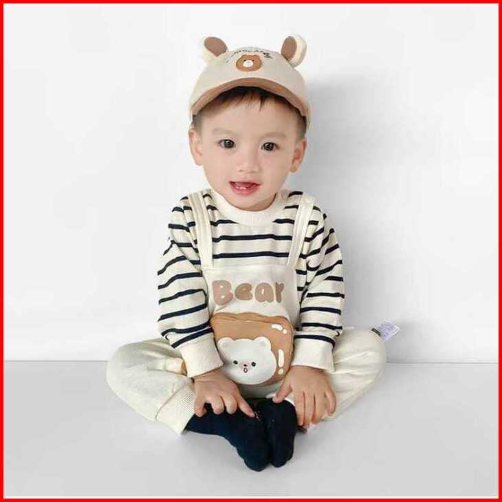 Babylovanta Jumper Kodok Premium Motif Bear Salur Lucu Usia 3-18 Bulan Jumper Bayi Lengan Panjang