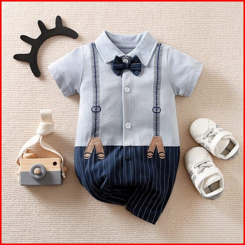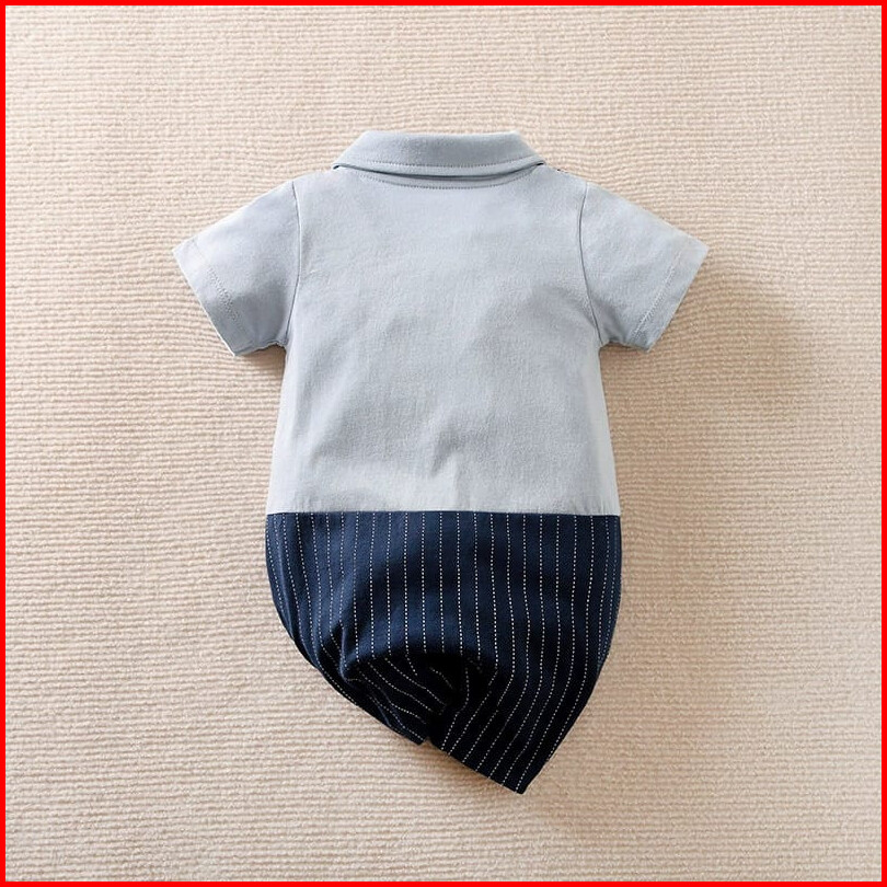 Baju Bayi Laki Laki Model Jumpsuit Lengan Pendek 0 6 9 12 18 Bulan Bahan Katun 100 Motif Overall Tuxedo Biru