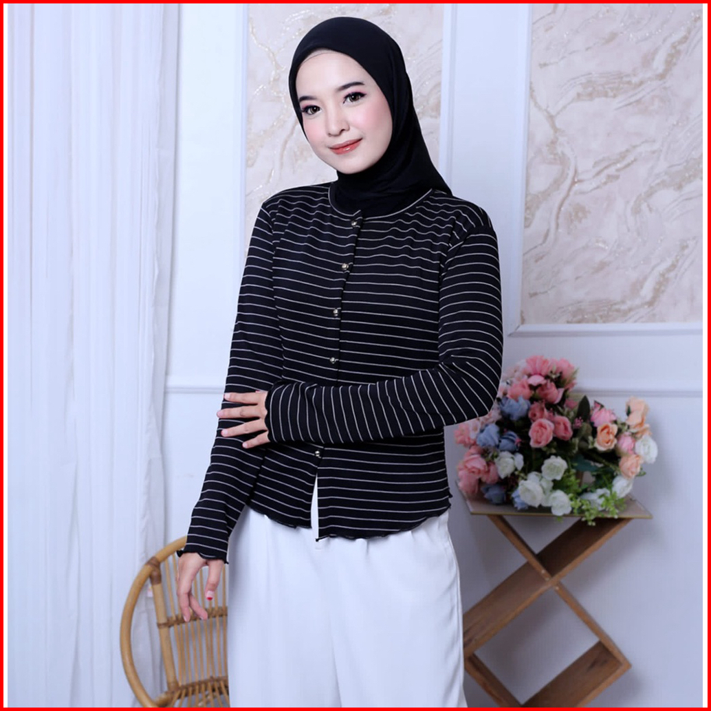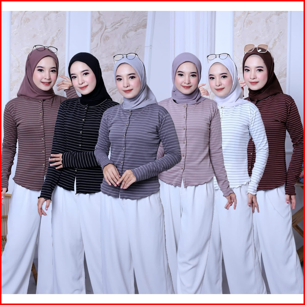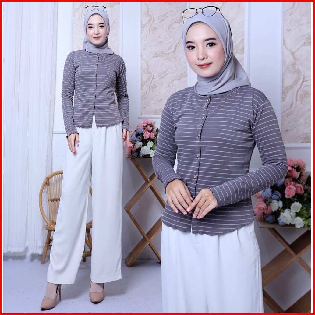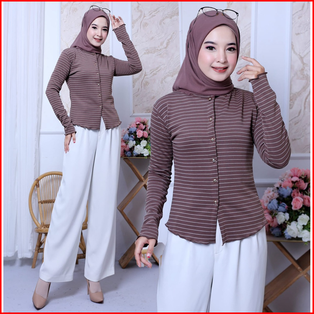 Blous Rip Kriwil Model Salur Lengan Panjang Terbaru Lengan Panjang