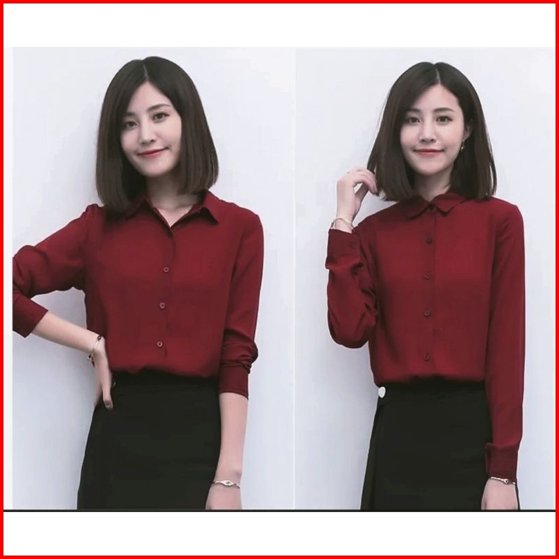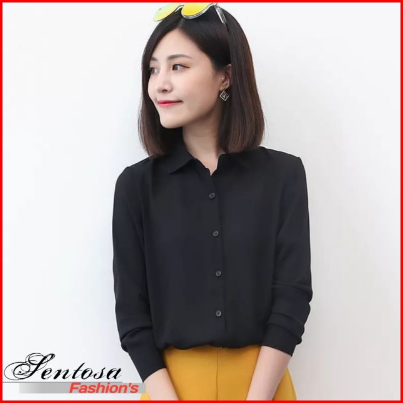 Atasan Kemeja Wanita Kemeja Blouse Atasan Kemeja Polos Lengan Panjang Basic