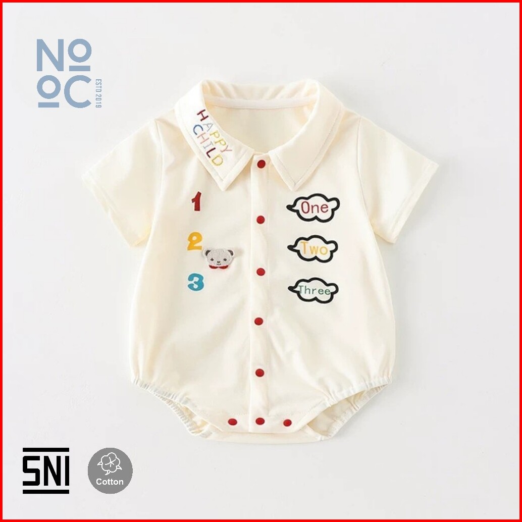 Nooc Baju Bayi Romper Jumper Bordir Happy Child 123 Cotton Fashion Baju Bayi Baru 2025 Sni