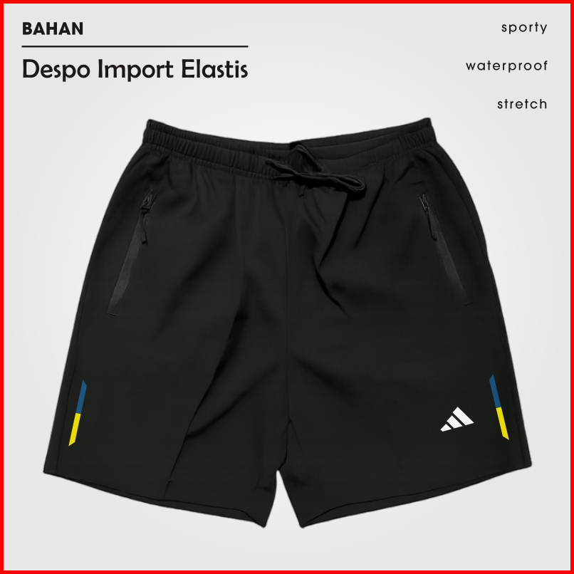 Celana Pendek Pria Olahraga Running Gym Fitness Santai Harian Saku Resleting Waterproof Despo Parasut Micro Import