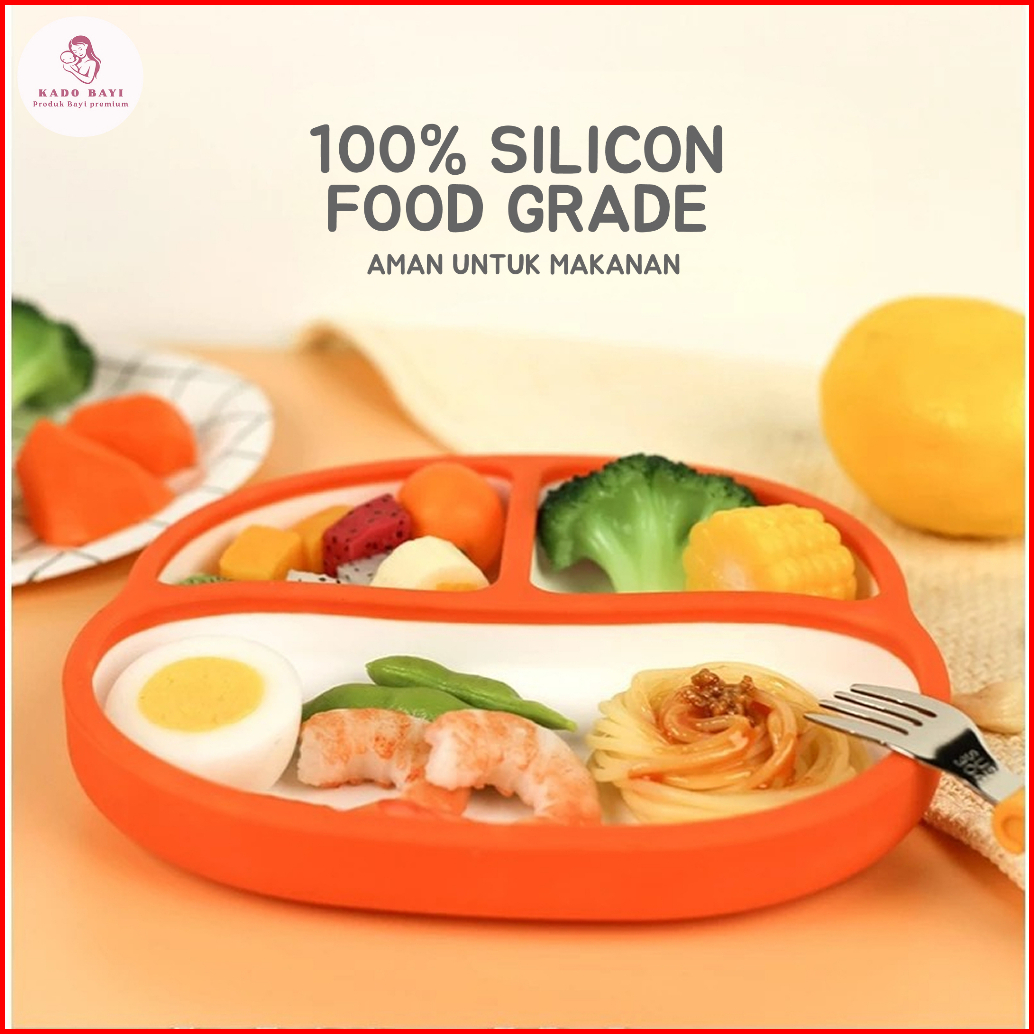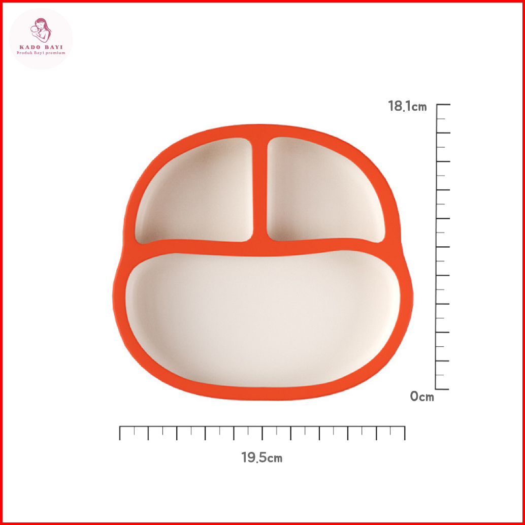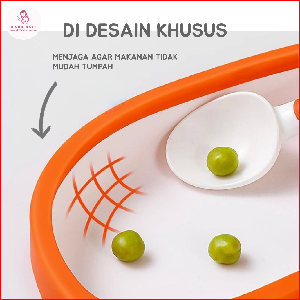 Piring Anak Jumbo 640ml - Kapasitas Besar Material Silikon Premium 3 Partisi Tutup Bpa Free Anti Slip Anti Tumpah Aman U