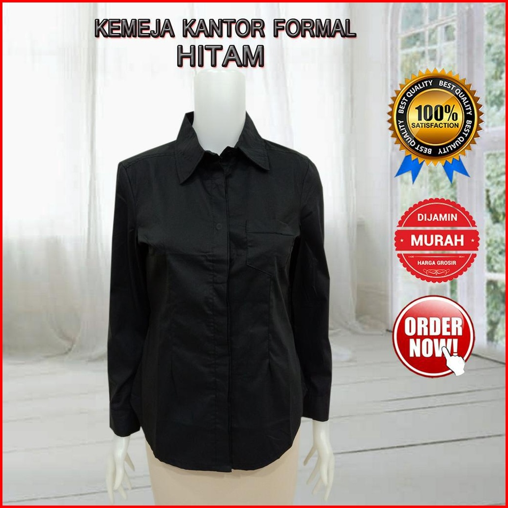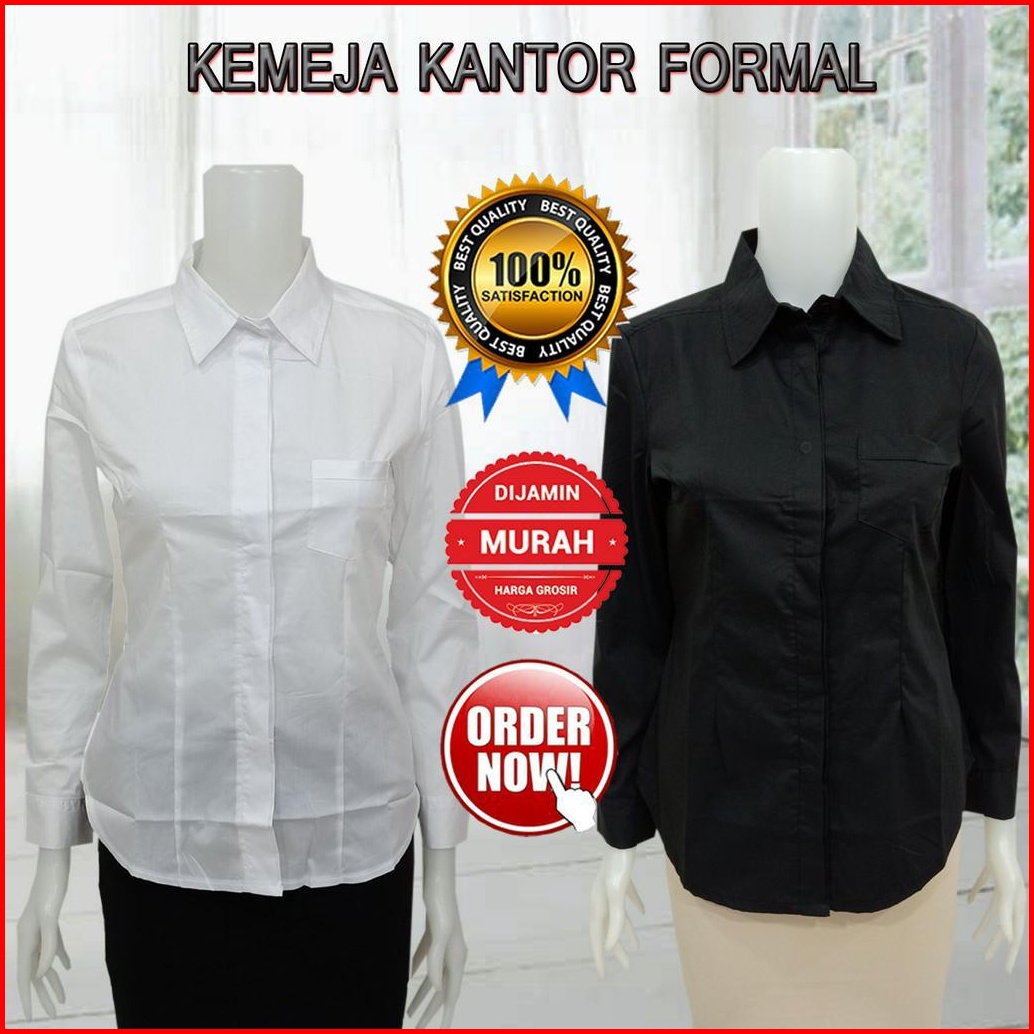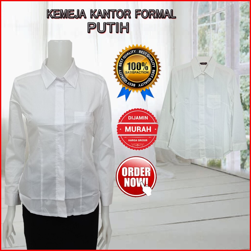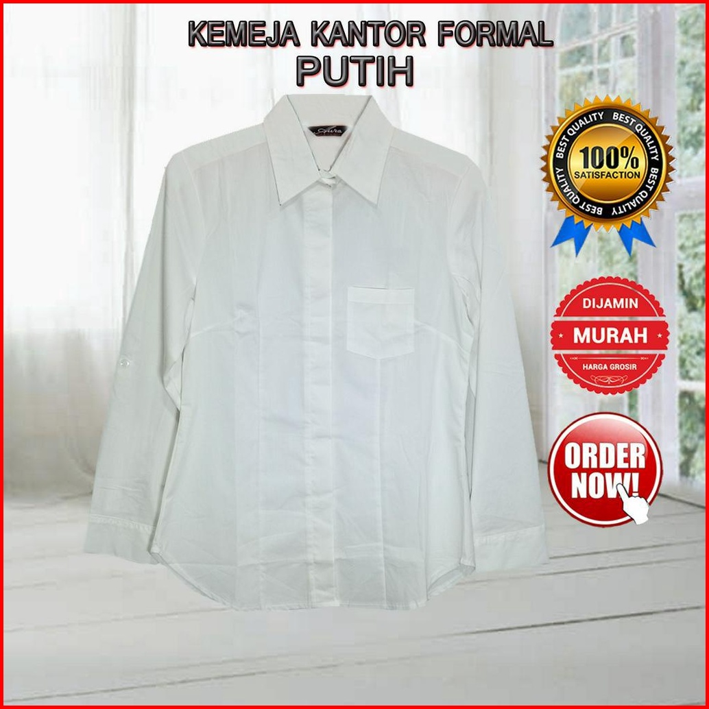 Kemeja Putih Wanita Lengan Panjang Baju Atasan Wanta Polos Basic Bahan Strech Kantong Satu