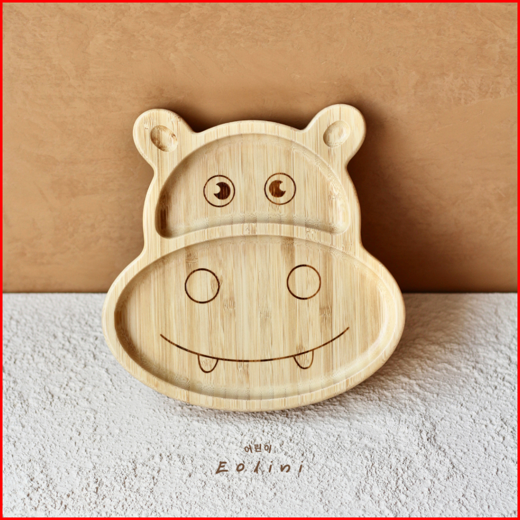 Eolini Bamboo Silicone Suction Plate Animal Shape Piring Tempat Makan Kayu Bambu Anak Bayi Mpasi Silikon Bentuk Hewan