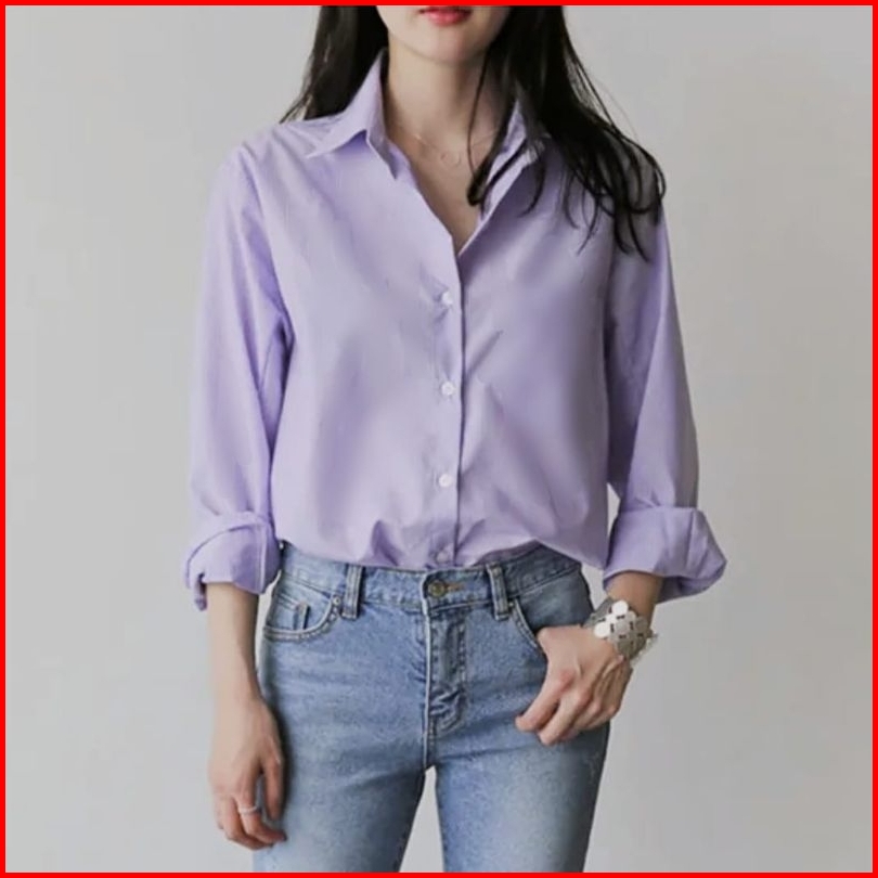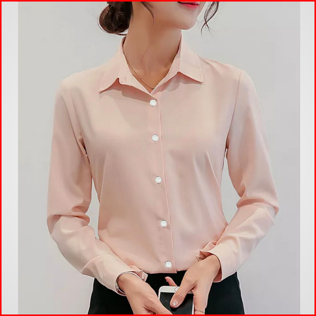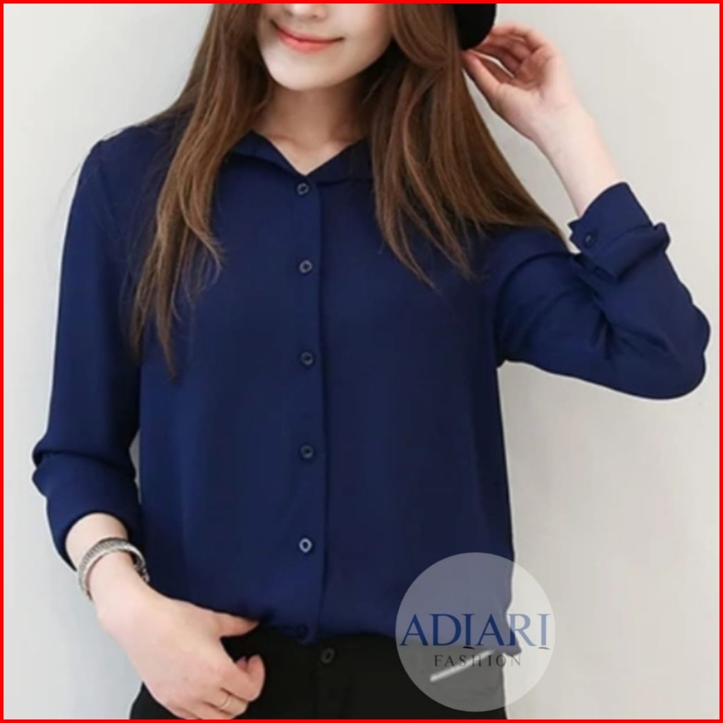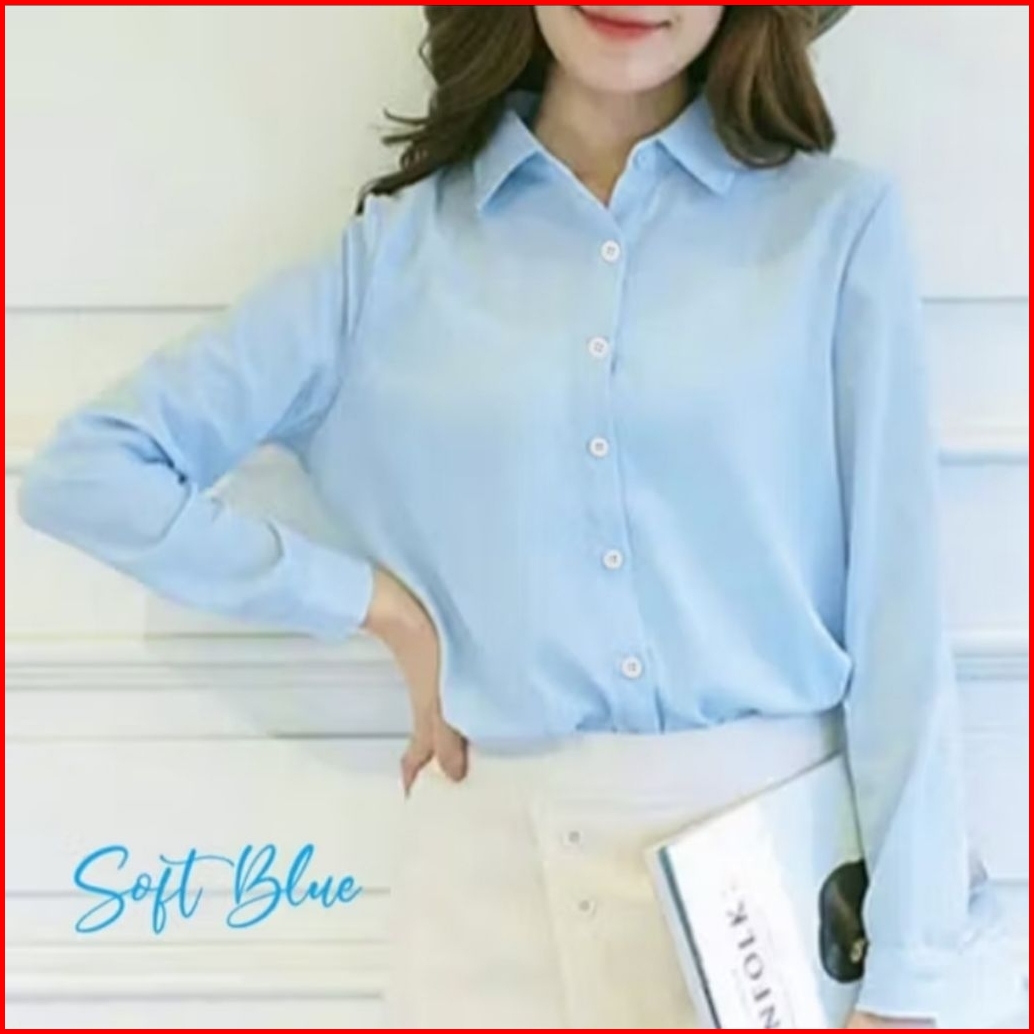 Kemeja Kerja Wanita Hitam Putih Polos Casual Lengan Panjang Shirt Kemeja Basic Wanita