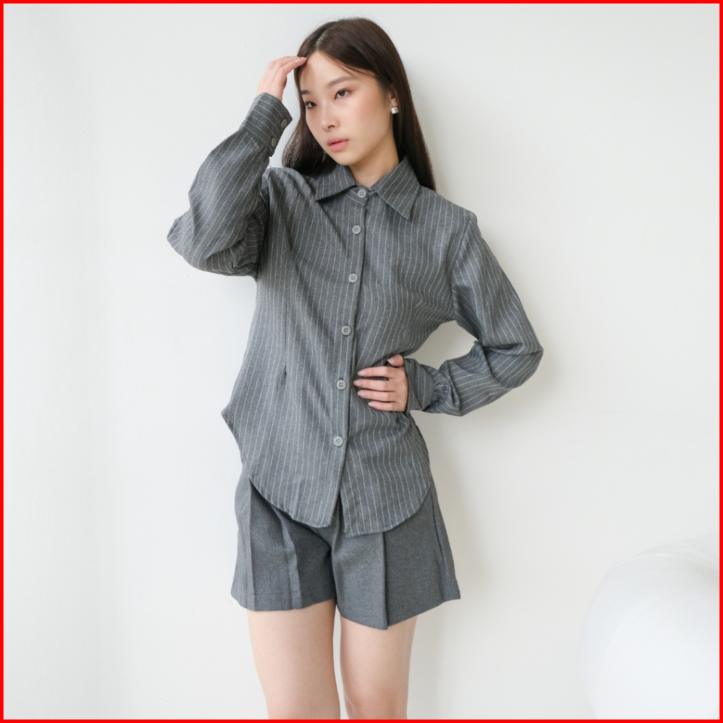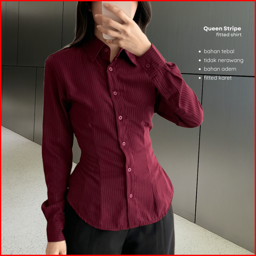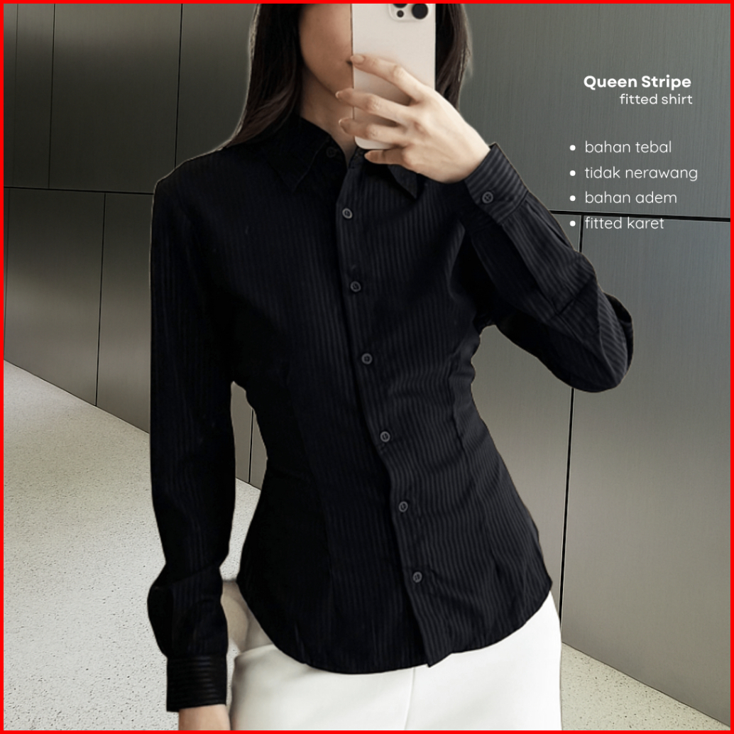 Elton Shirt Kemeja Wanita Garis Garis Kekinian Terbaru Slim Fit Kemeja Kerja Hitam Cewek Korean Lengan Panjang