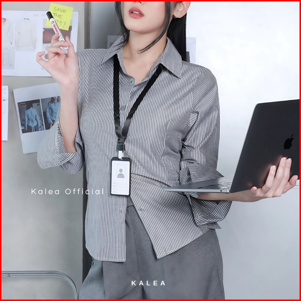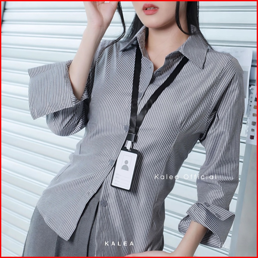 Kemeja Wanita Kylie Shirt Salur Lengan Panjang Kerja Fitted Stripe Slim Fit Katun