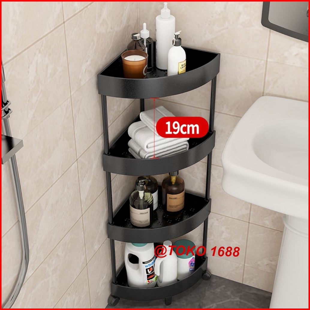 Triangle Rak Dapur Plastik Rak Troli Rak Susun Serbaguna 4 Layer Dengan Roda