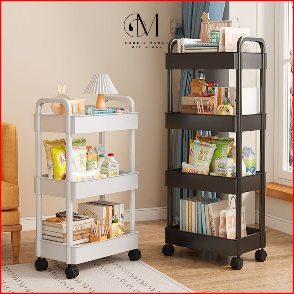 Gmo Square Rak Dapur Rak Toilet Rak Susun Serbaguna 3-5 Tingkat Dengan Roda