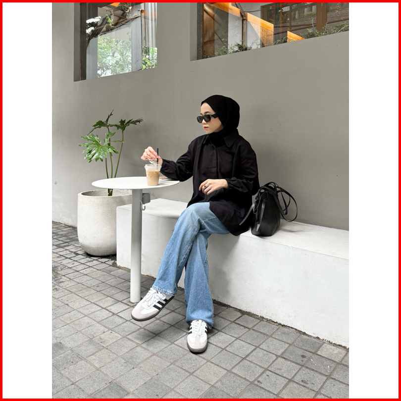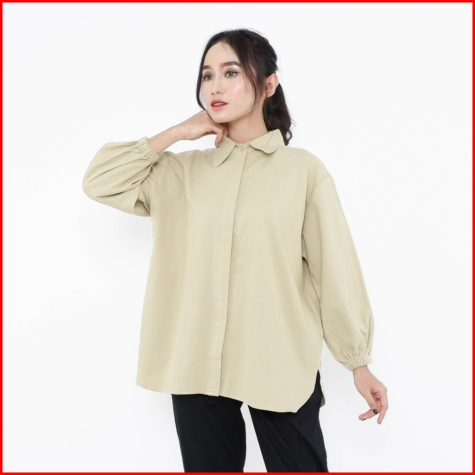 Femmewear - Rebecca Shirt Kemeja Polos Linen Atasan Wanita Lengan Panjang