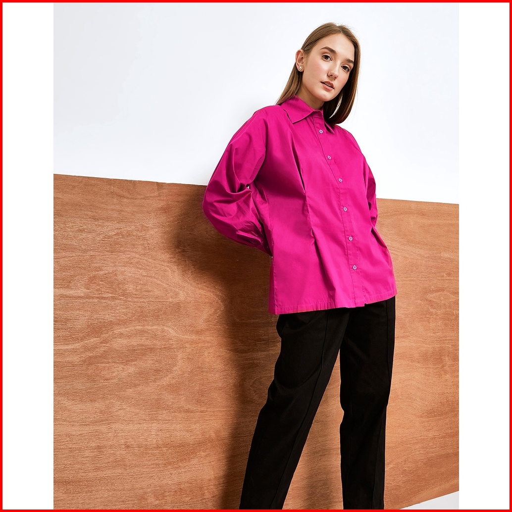 Cottonaive Rana Shirt Fuschia Kemeja Wanita Plus Size Atasan Wanita Oversized Kemeja Katun Poplin Kemeja Wanita Plus Siz