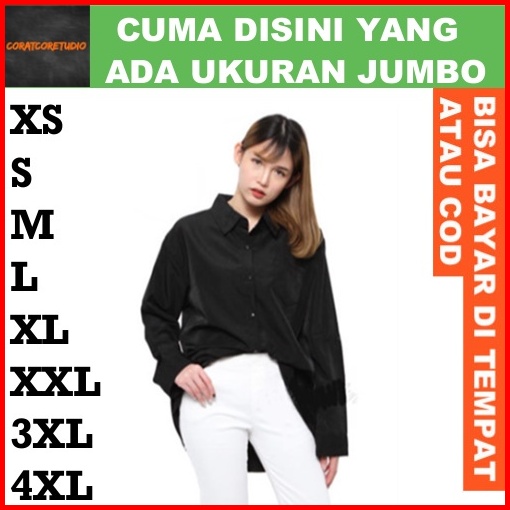 Coratcoretudio Kemeja Wanita Hem Cewek Jumbo Big Size Panjang Polos Kantong Saku Formal Casual Hitam