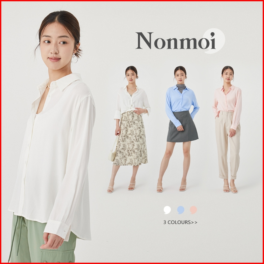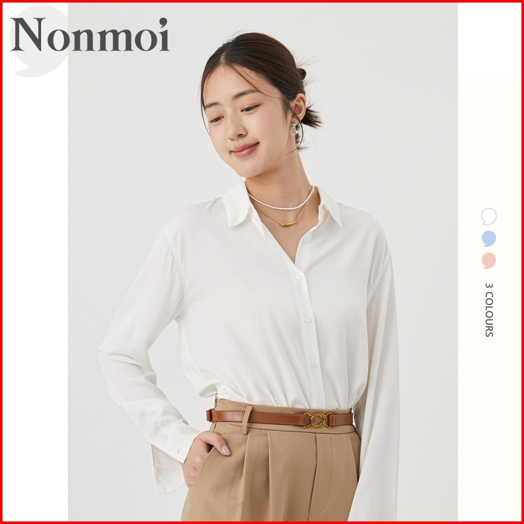 Nonmoi Mireille Kasual Kemeja Tipis Lengan Panjang Kerah Polos Kemeja Wanita