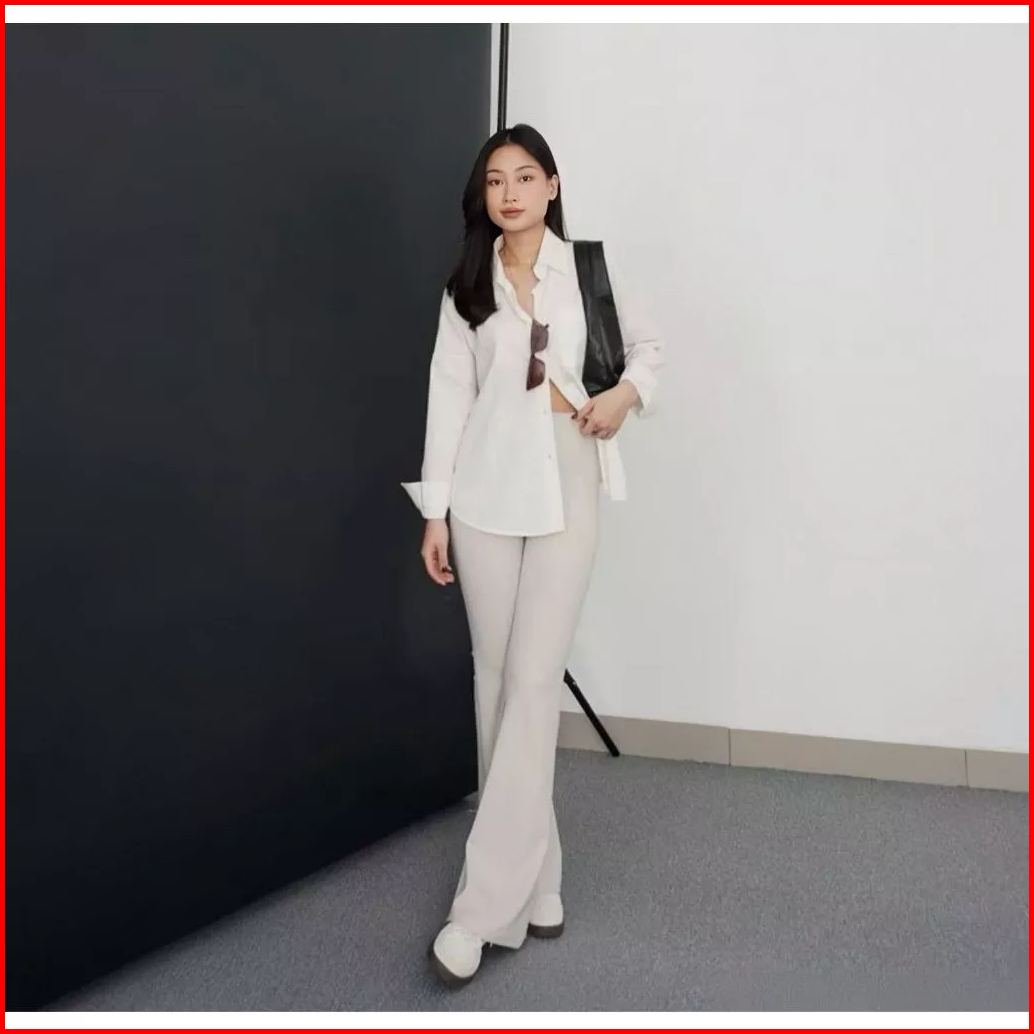 Celana Fit And Flare Cutbray Scuba Highwaist Stretch Melar Kulot Wanita Hitam