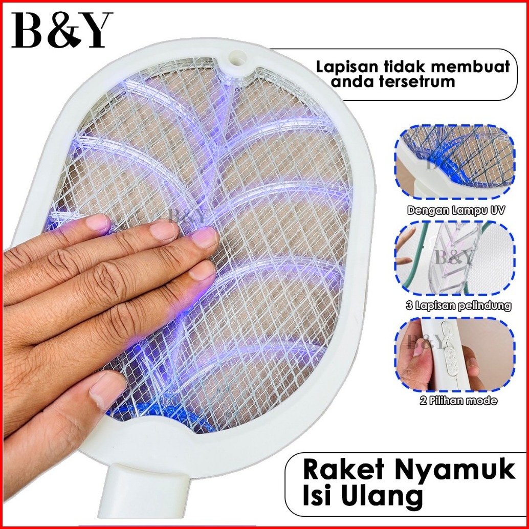 Raket Nyamuk Isi Ulang Rechargeable Mosquito Trap 2 In 1 Raket Nyamuk Putih
