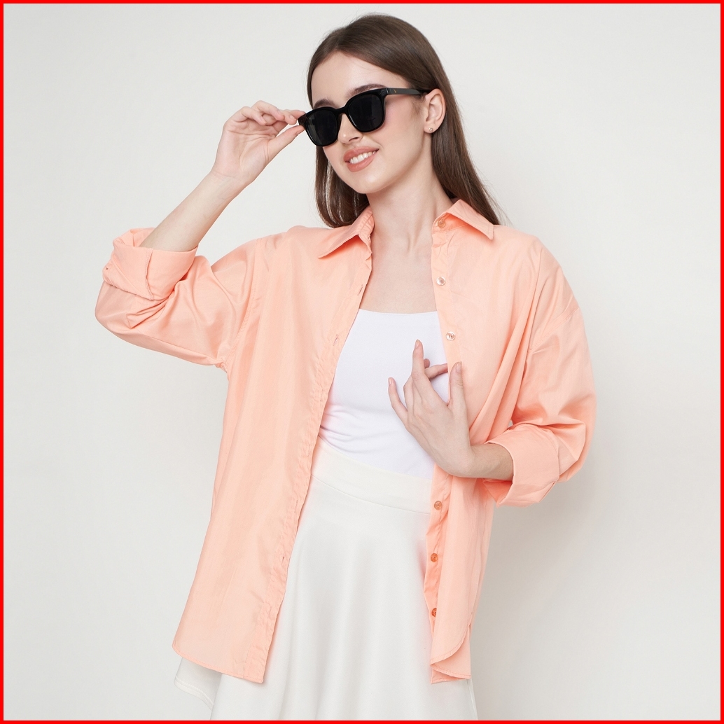 Asal Basic Cali Oversized Shirt Kemeja Poplin Oversized Wanita - Peach