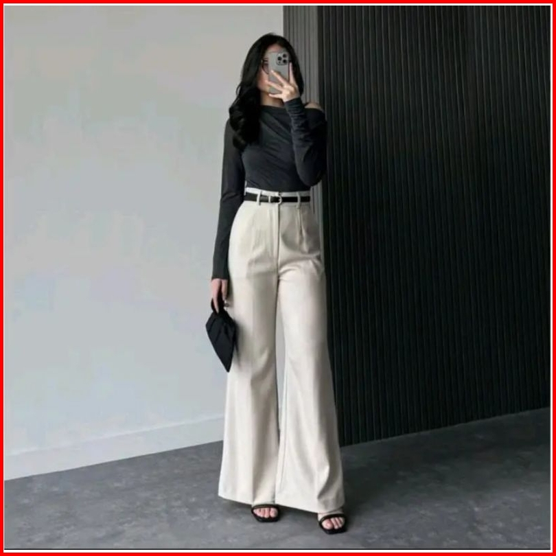 Etta Pants Jumbo Celana Cutbray Wanita Hight Waist Bahan Semi Wol Flare Pants