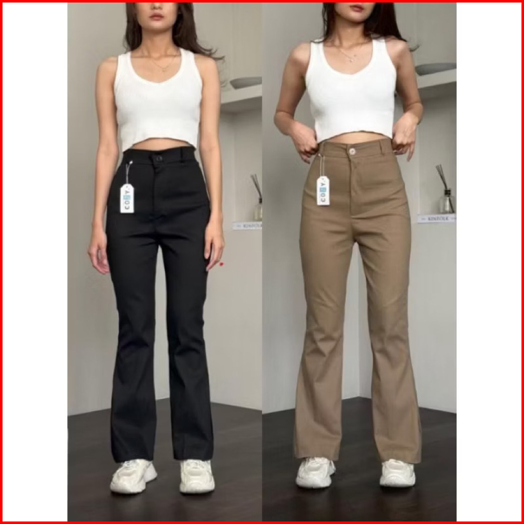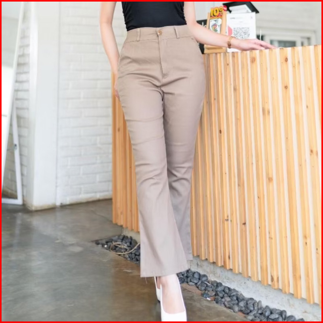 Nenjie - Cutbray Flare Pants - Highwaist Kulot Cutbray Trousers Streach Katun Twill