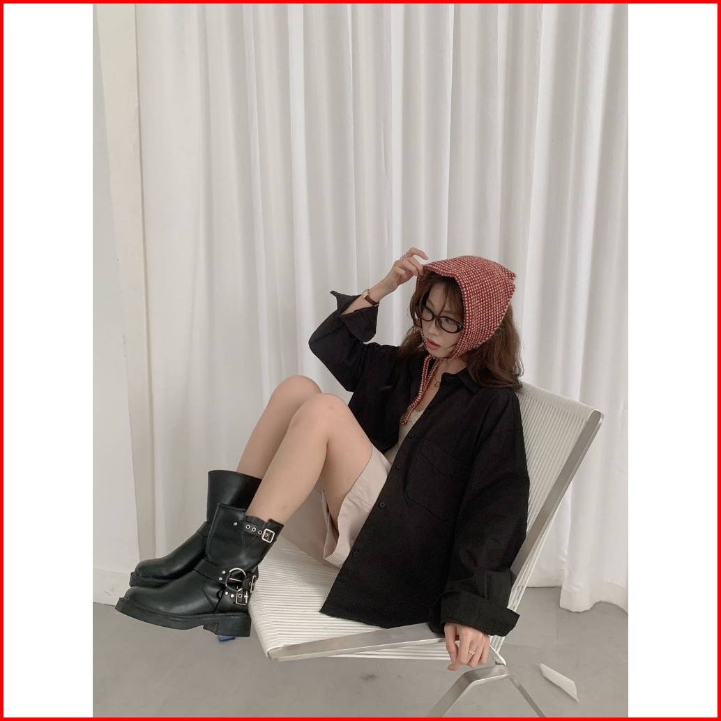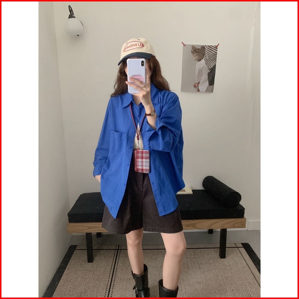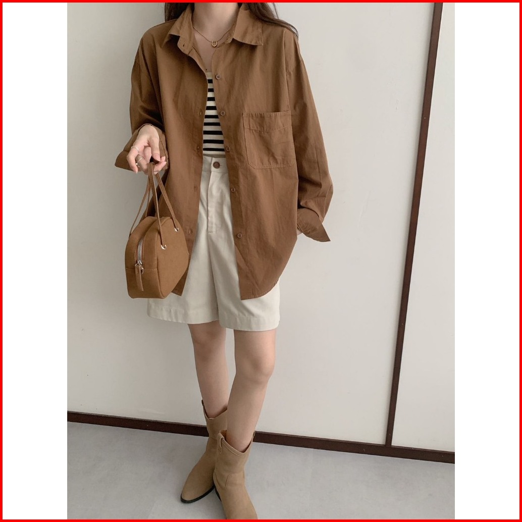Kemeja Wanita Kantong Satu Polos Wanwan 911 Minimalist Katun Korean Style Import Bangkok Bkk