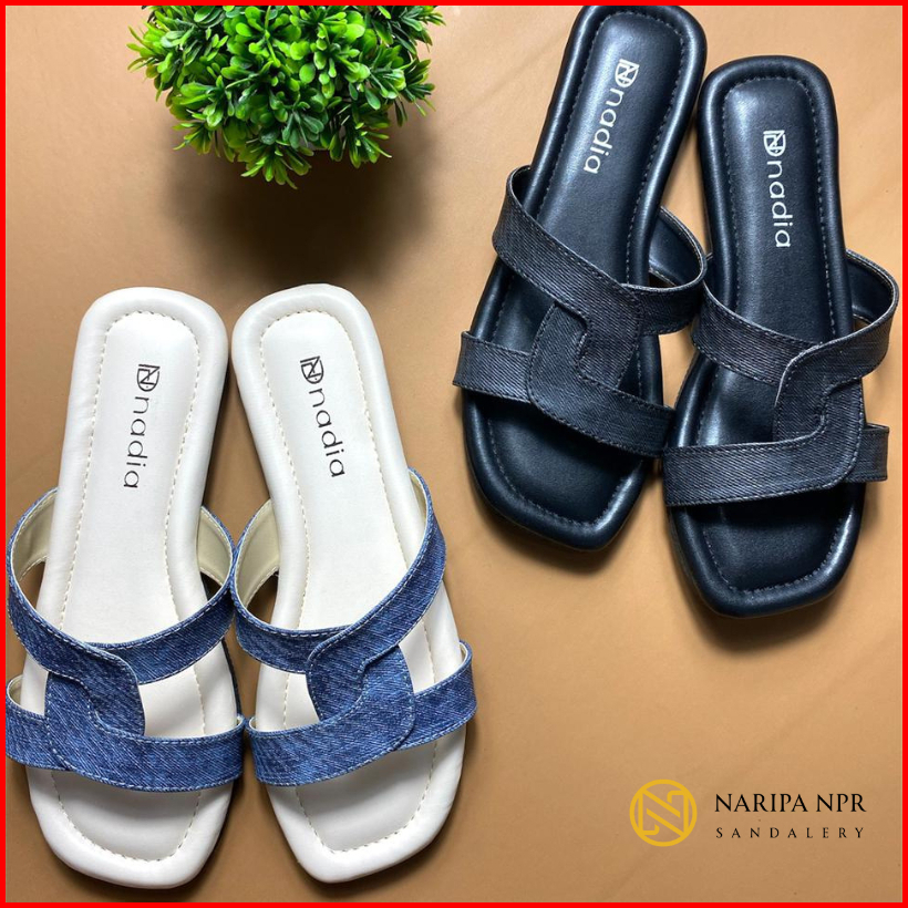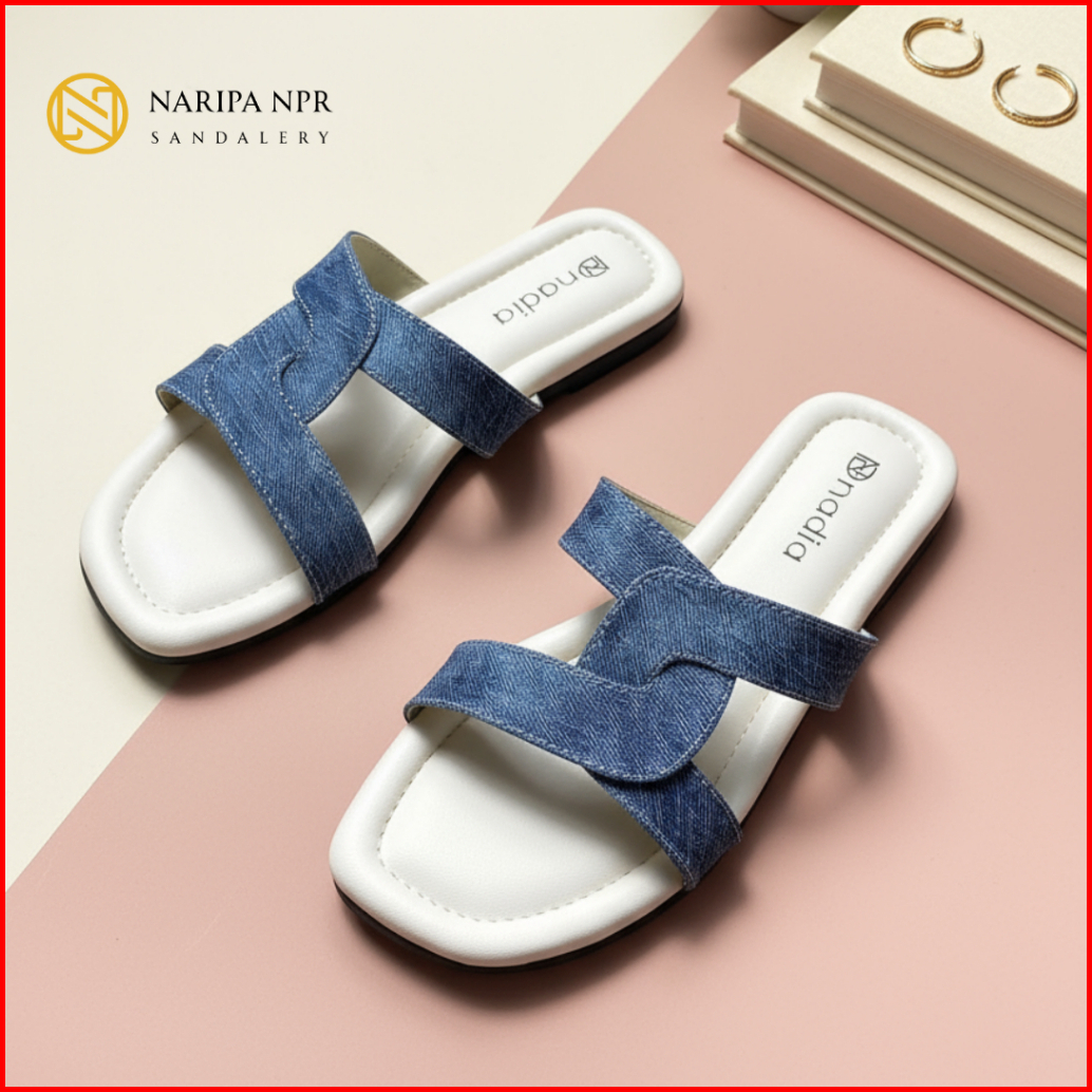 Sandal Wanita Casual Slip On Denim Cross Strap Stylish Nyaman Poppy - Naripa Npr Sandalery