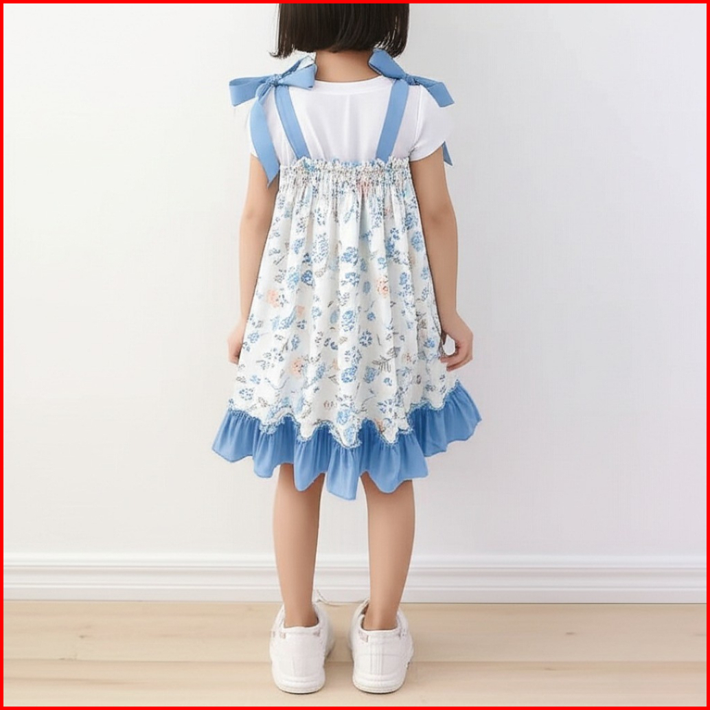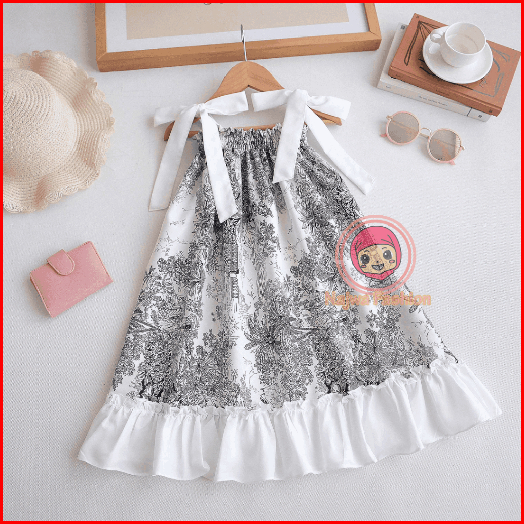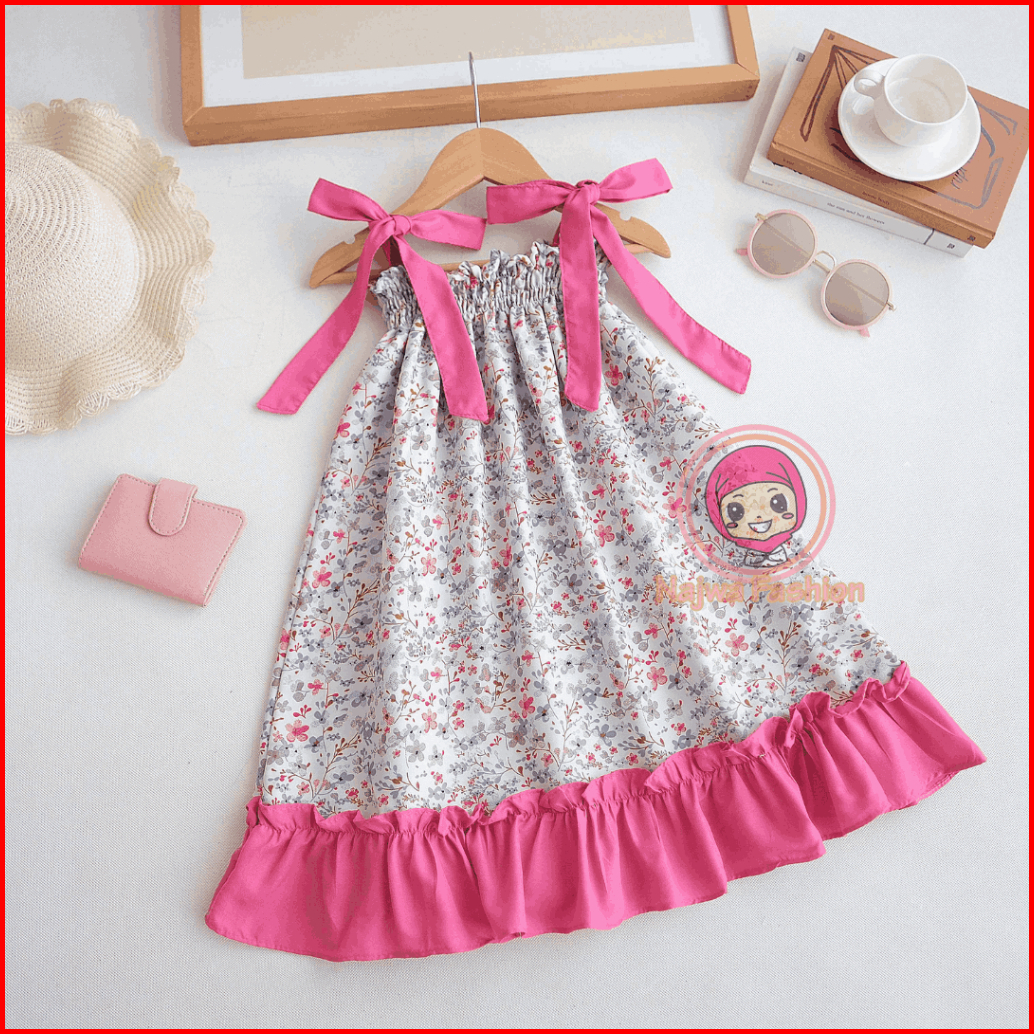 Najwa - Ready Stock Dress Anak Natsumi Motif Flower Model Pita Modis Fashion Gaun Anak Perempuan Terbaru