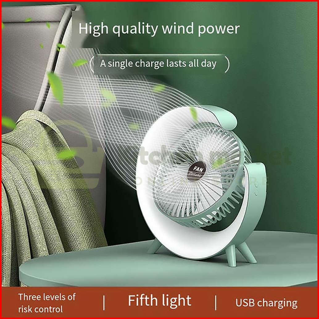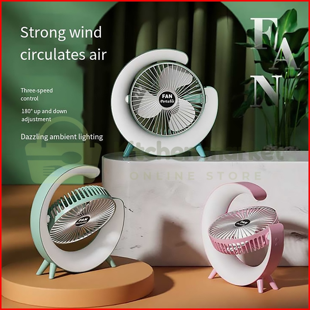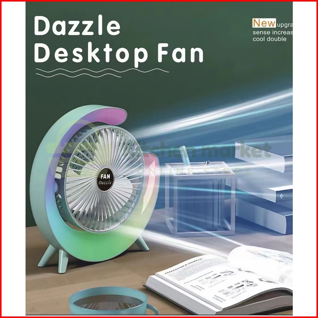 Km Kipas Angin Meja Dekstop Lampu Warna Warni Fan Portable 2 In 1 Multifungsi