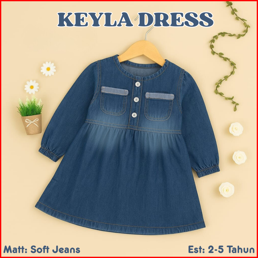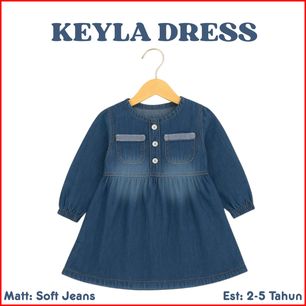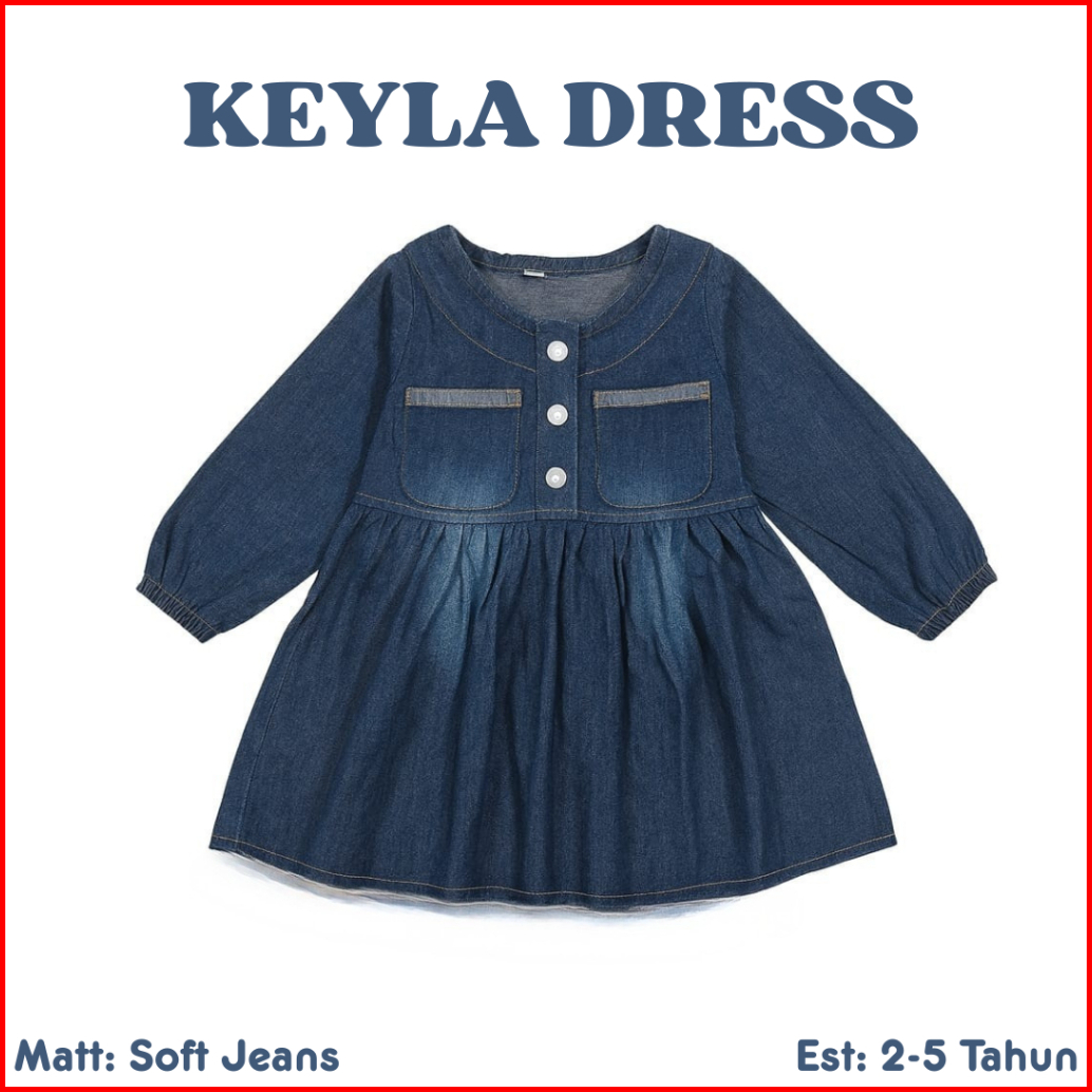 Dezata Keyla Dress Dress Jeans Anak 2-5 Tahun Dress Jeans Lengan Panjang Anak Perempuan Midi Dress Anak
