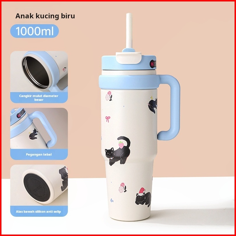 Tumbler Stainless Botol Minum Aesthetic Gelas Es Berkapasitas Besar 1000ml Dari Baja Tahan Karat 316