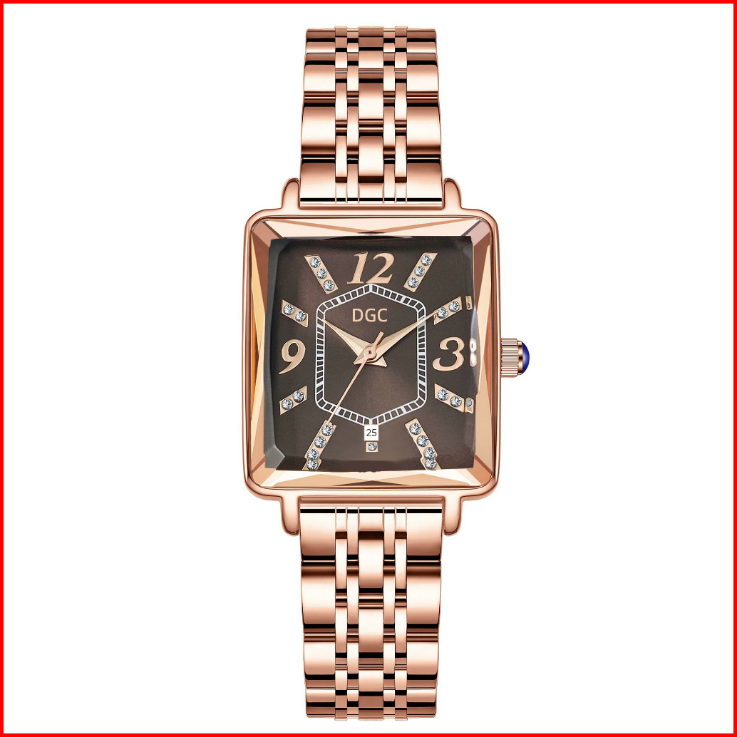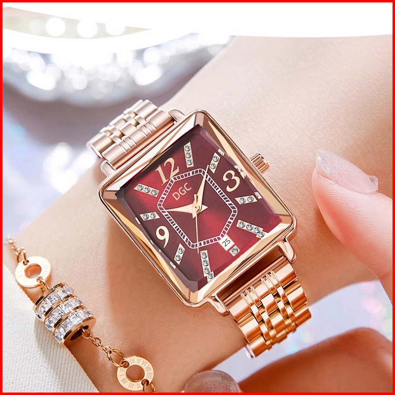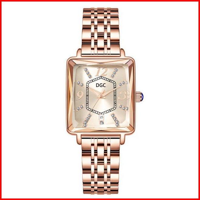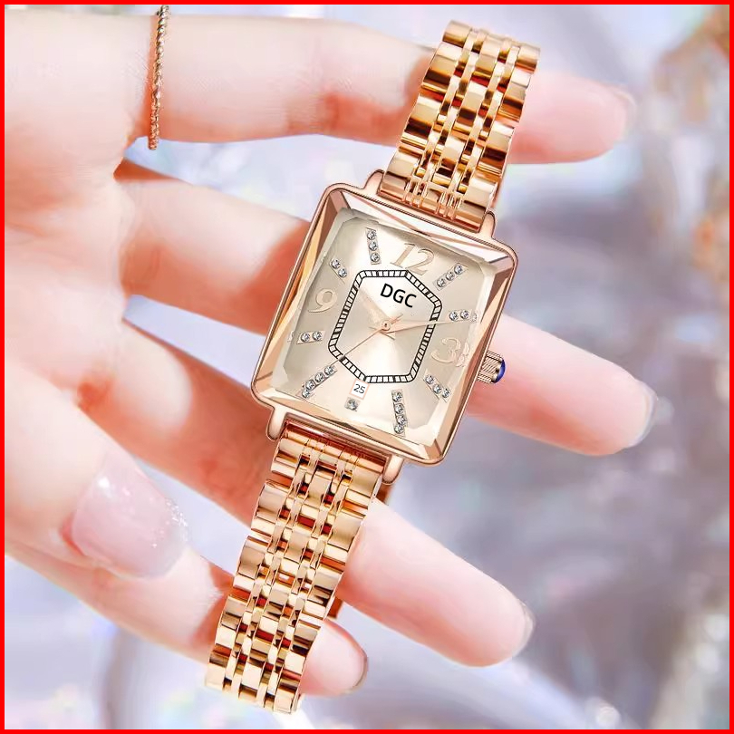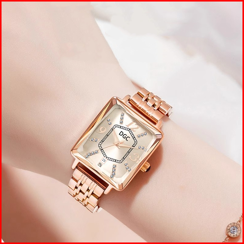 Dgc G176 Jam Tangan Wanita Fashion Elegant Bentuk Persegi Berkilau Jam Tangan Quartz Analog Tanggal Classic Steel Rosego
