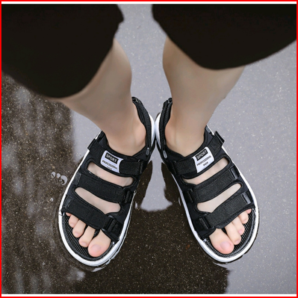 Sandal Gunung Strap Pria Trendy Korea Tali Belakang Bisa Dilepas Hitam Putih Terbaru 2025