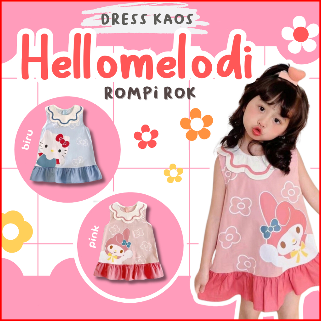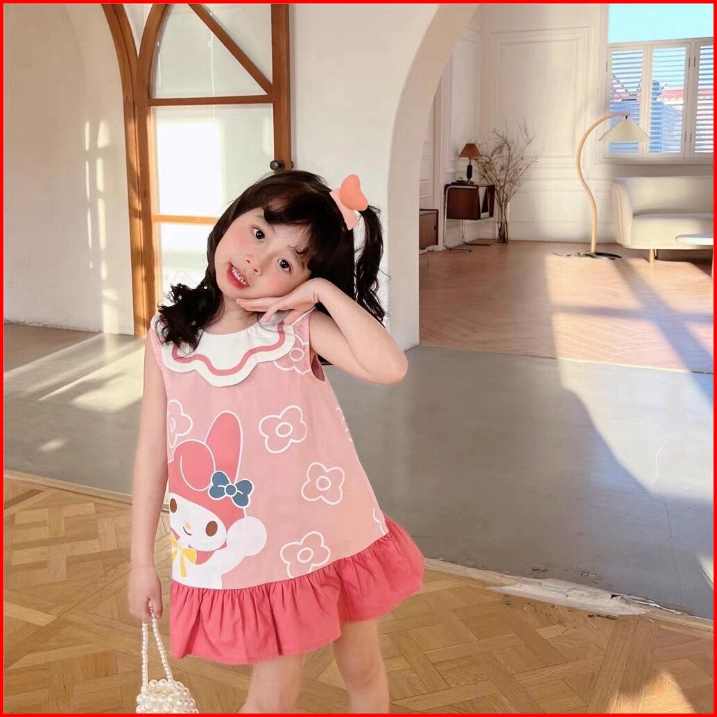 Mabebi.official1-9 Tahun Gaun Anak Perempuan Hello Kitty Gaun Cetak Kartun Lucu Kaus Anak Perempuan Gaun Rompi Kerut Pak