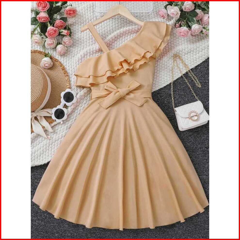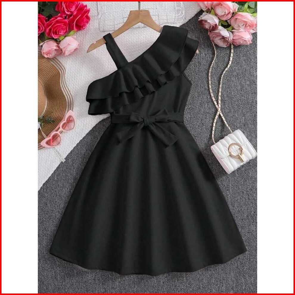 Dress Anak Perempuan One Shoulder Cantik Elegan Bahan Scuba Usia 1-6 Tahun