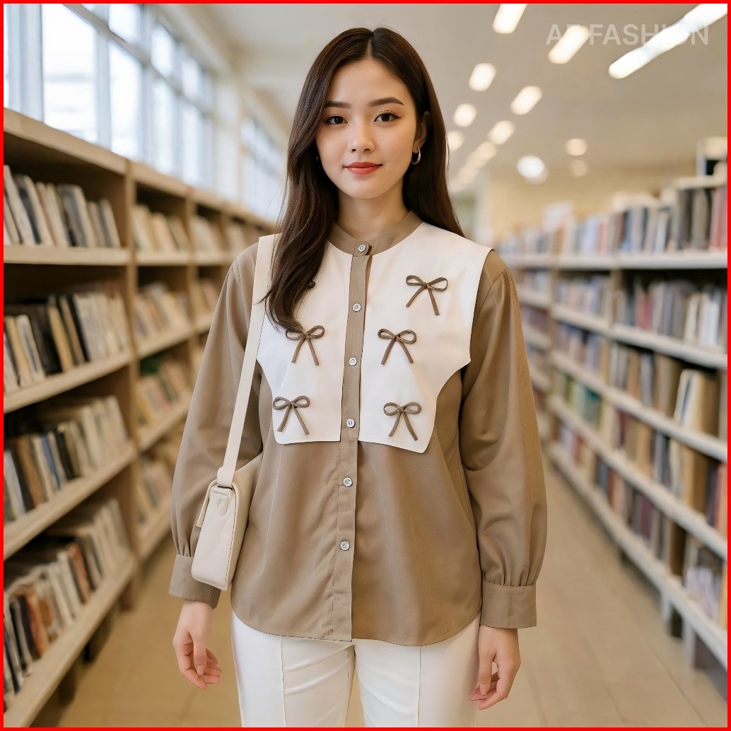 Af Fashion Vest Pita Ribbon Shirt Atasan Wanita Lengan Panjang