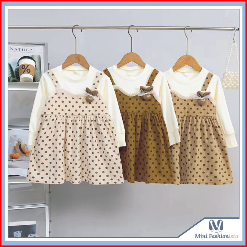 Dress Anak Perempuan Dress Polkadot Gaun Anak Perempuan Korean Style Usia 3-9t