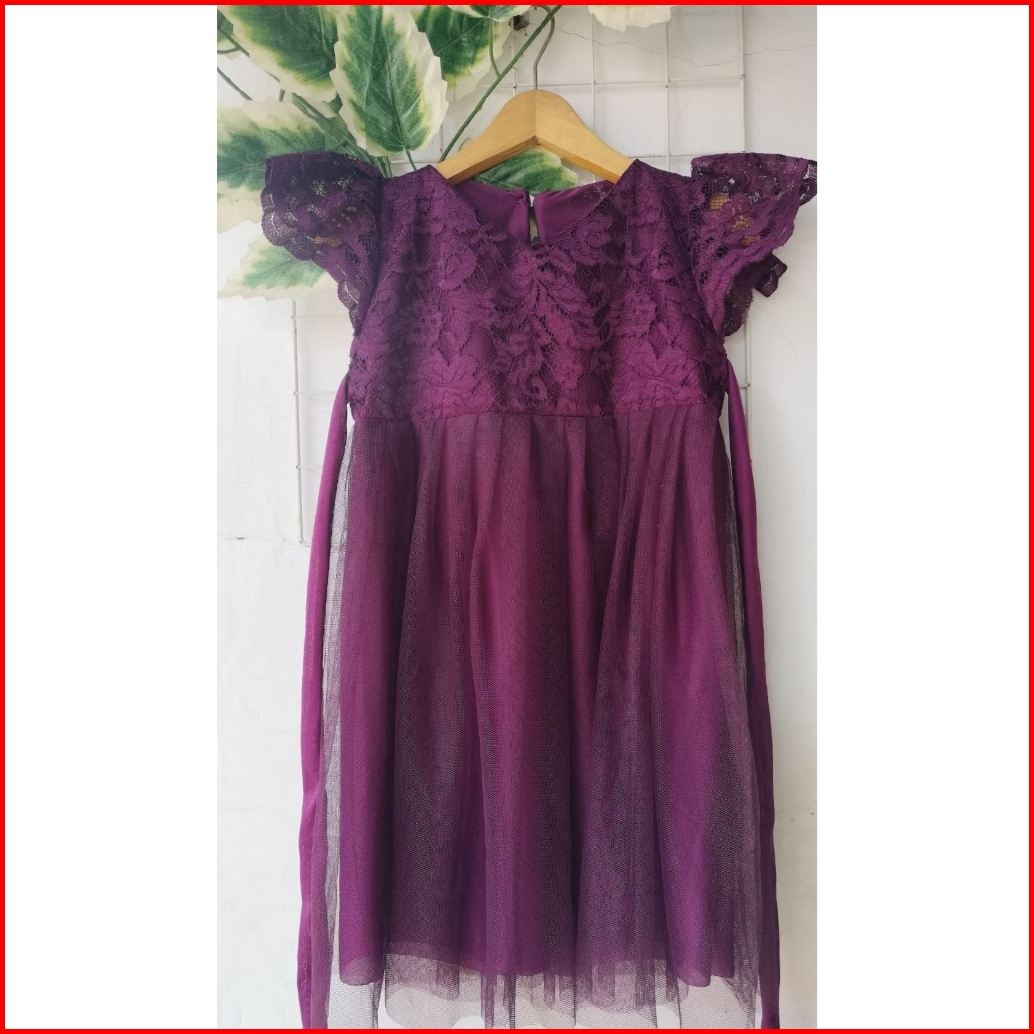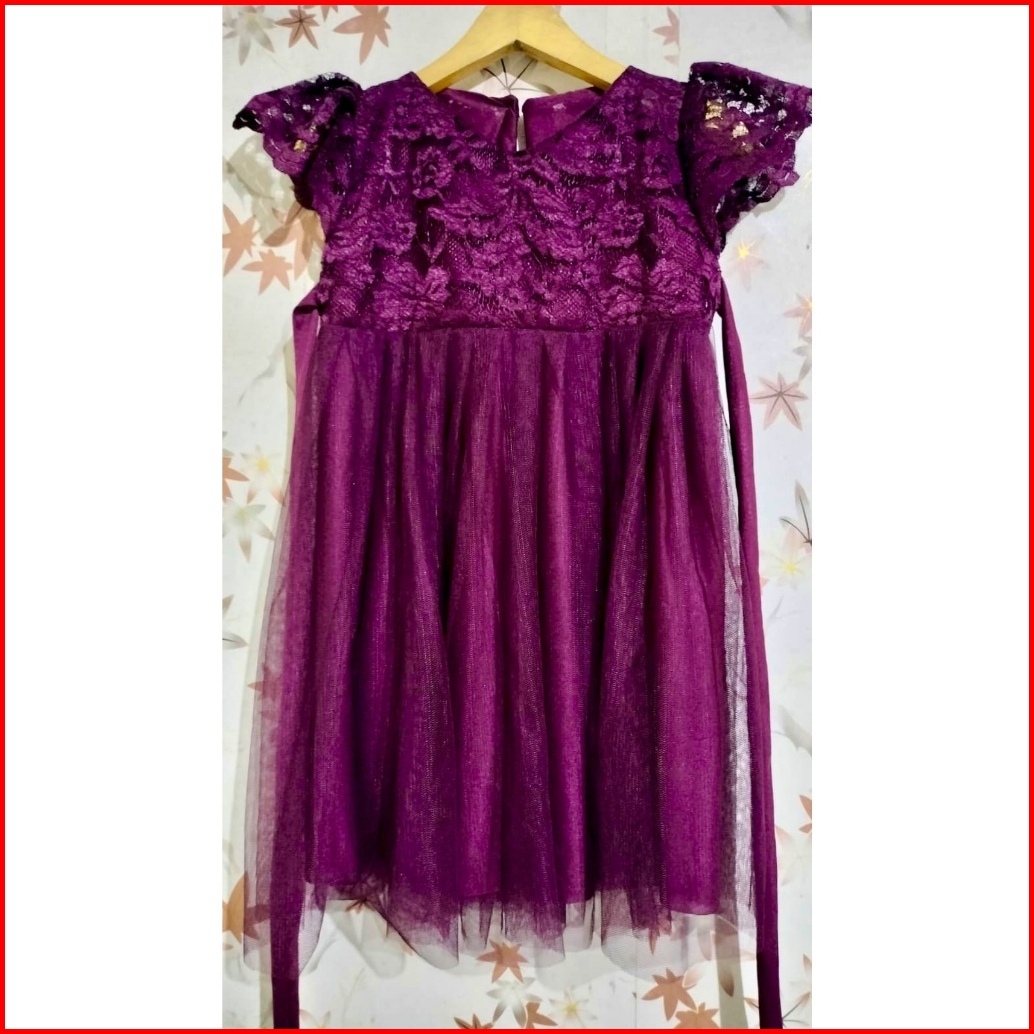 Dress Tutu Anak Perempuan Dress Brukat Tutu Burgundy Gaun Ultah Baju Pesta Anak 1-10 Tahun