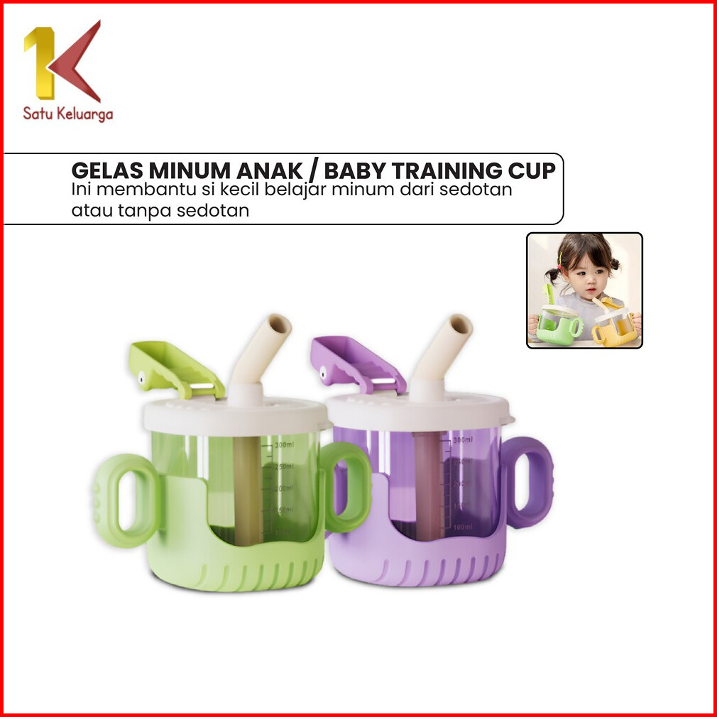 Satu Keluarga Gelas Minum Anak Baby Training Cup 300ml C1053 Gelas Susu Balita Motif Buaya Dengan Pegangan Dan Sedotan S