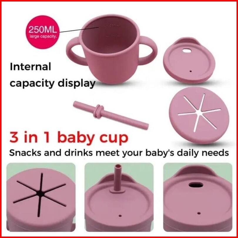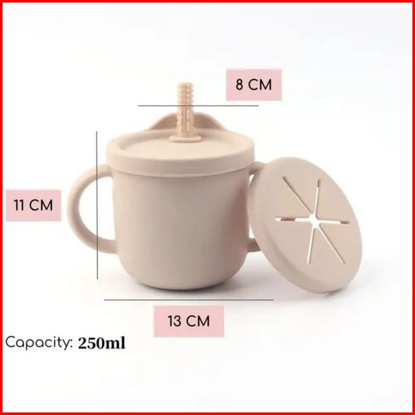 Silicone Cup And Snack Cup 4in1 For Baby Kids Gelas Silikon Snack Bayi Multifungsi Anti Tumpah 250 Ml