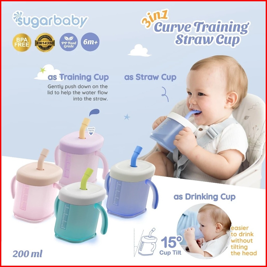 Sugarbaby 3 In 1 Curve Training Straw Cup Gelas Minum Bayi Gelas Mpasi