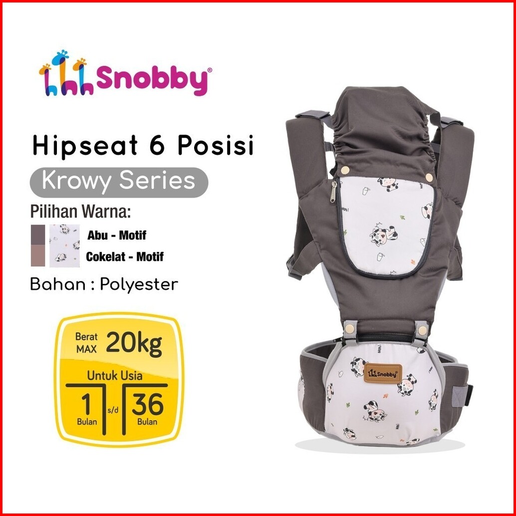 Snobby Gendongan Hipseat Bayi 6 Posisi Dan Saku Sirkulasi Udara Krowy Millo Series Sbg8743
