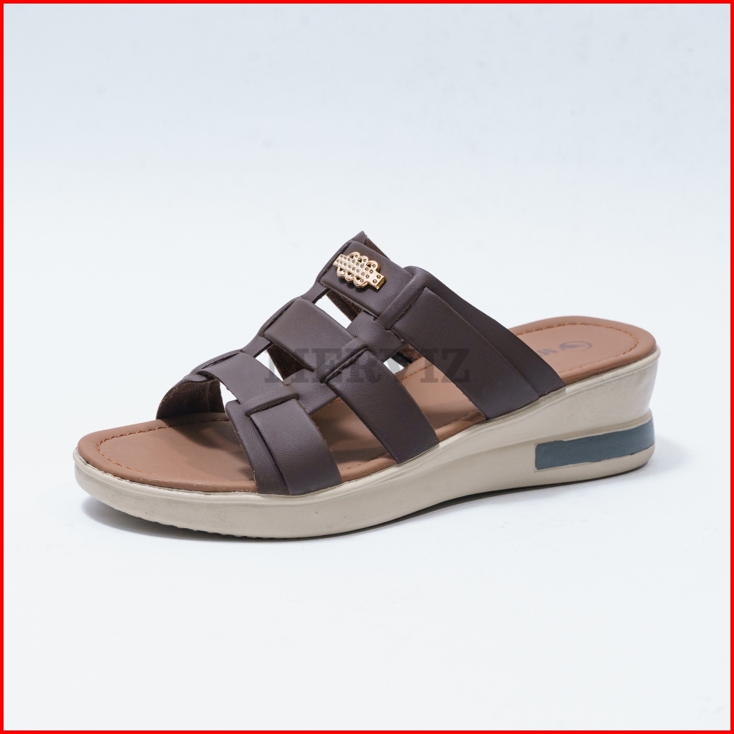 Sandal Wanita Wedges Sintetis Nyaman Sendal Slop Wedges Casual Mz114